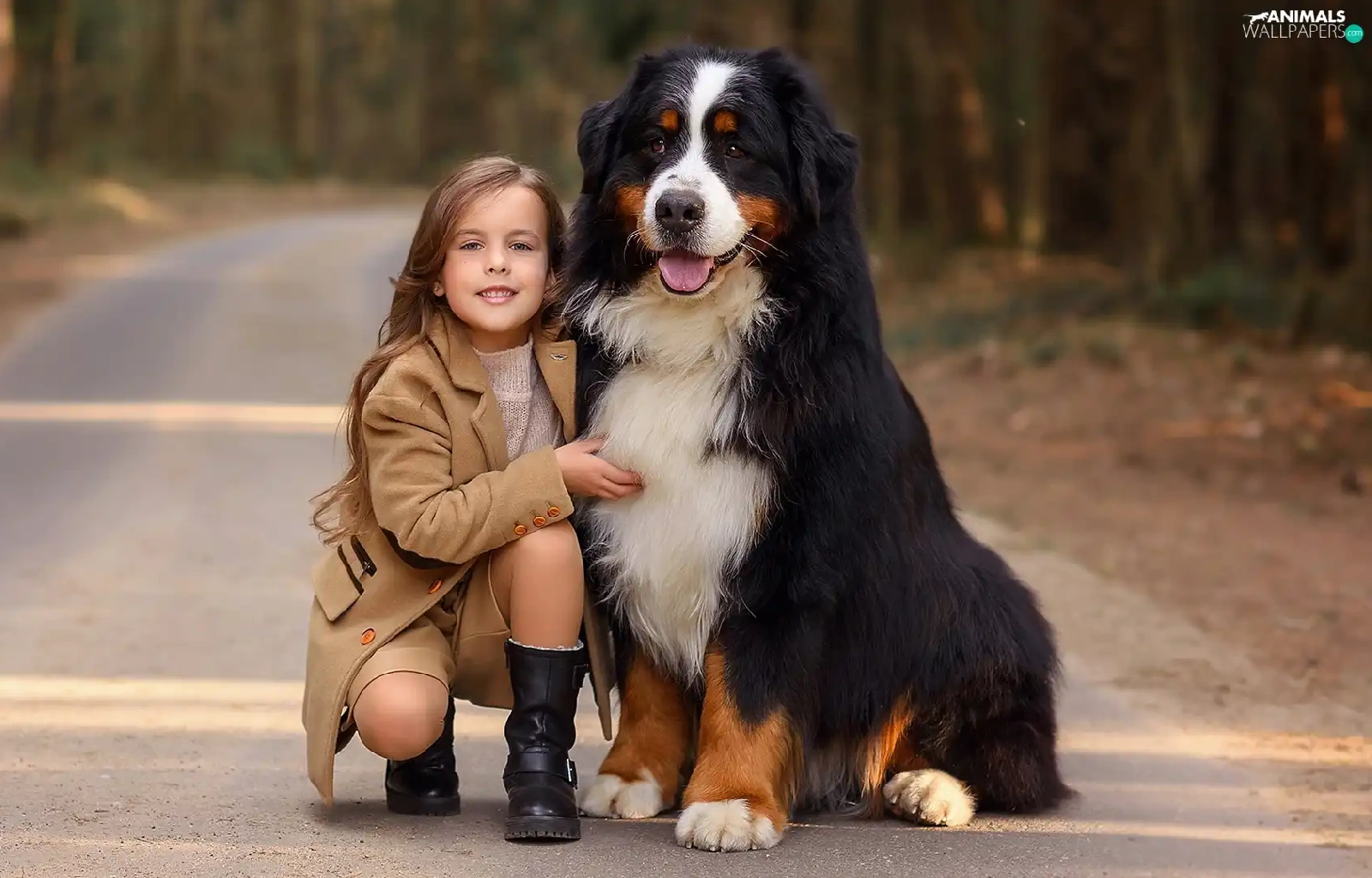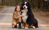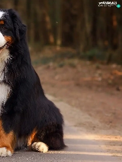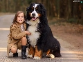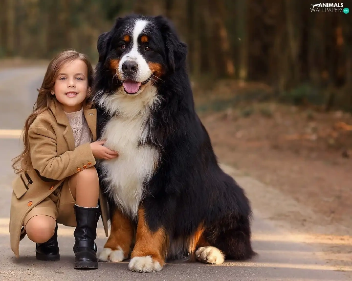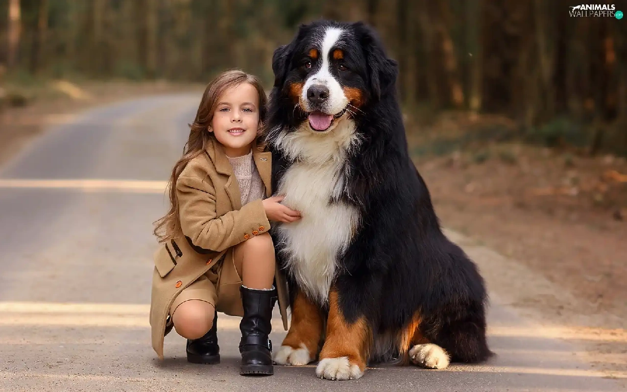 trees, viewes, Bernese Mountain Dog, Way, girl