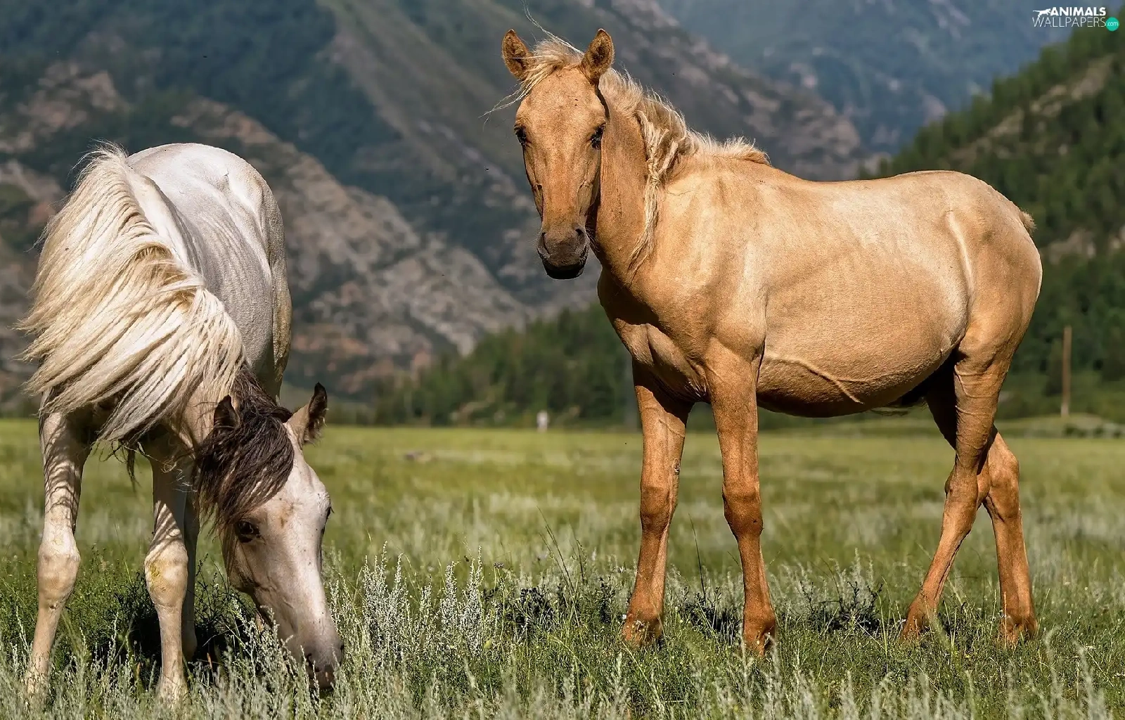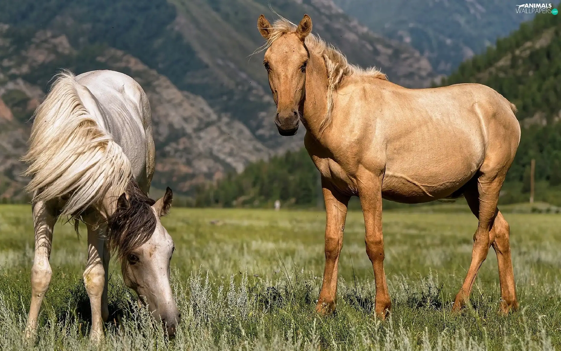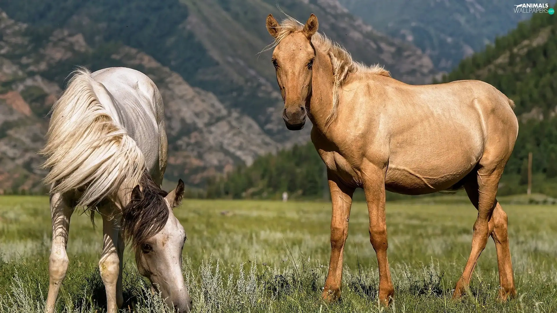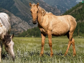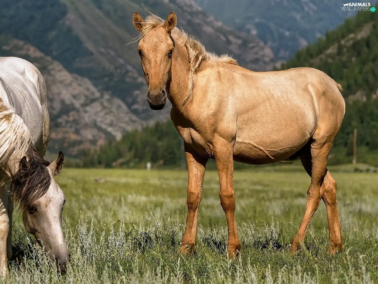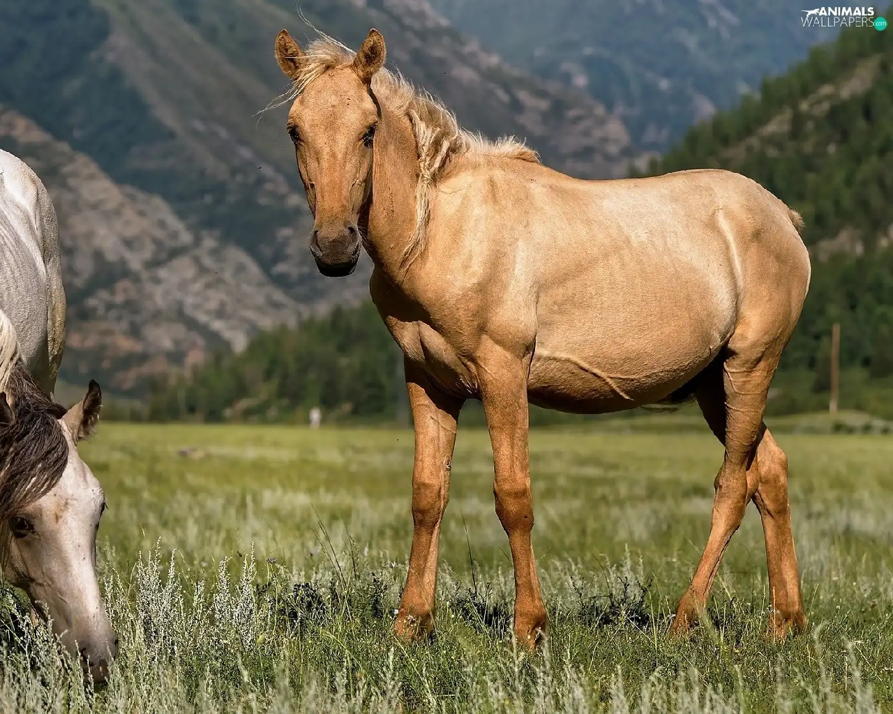 Two cars, Meadow, Mountains, bloodstock