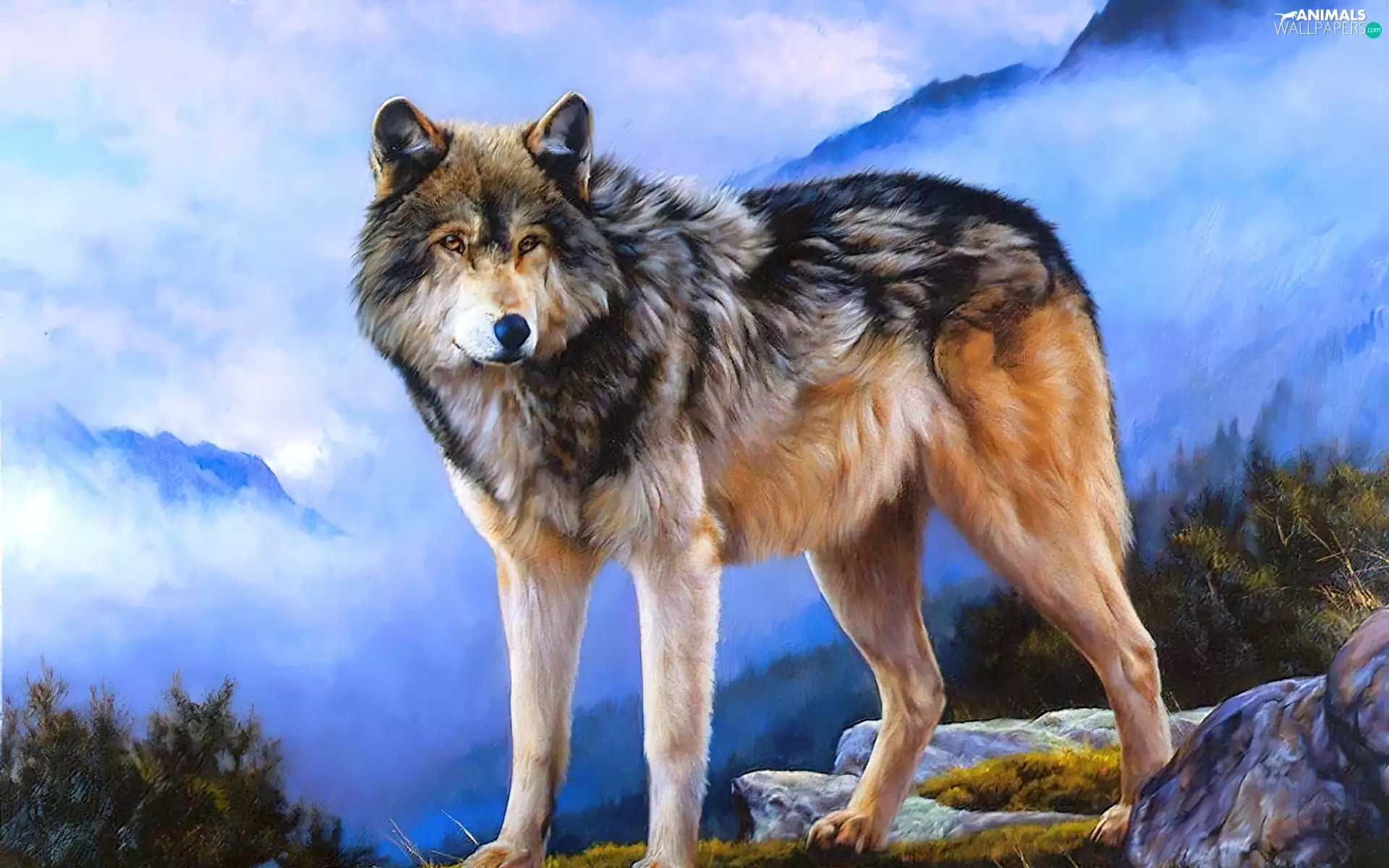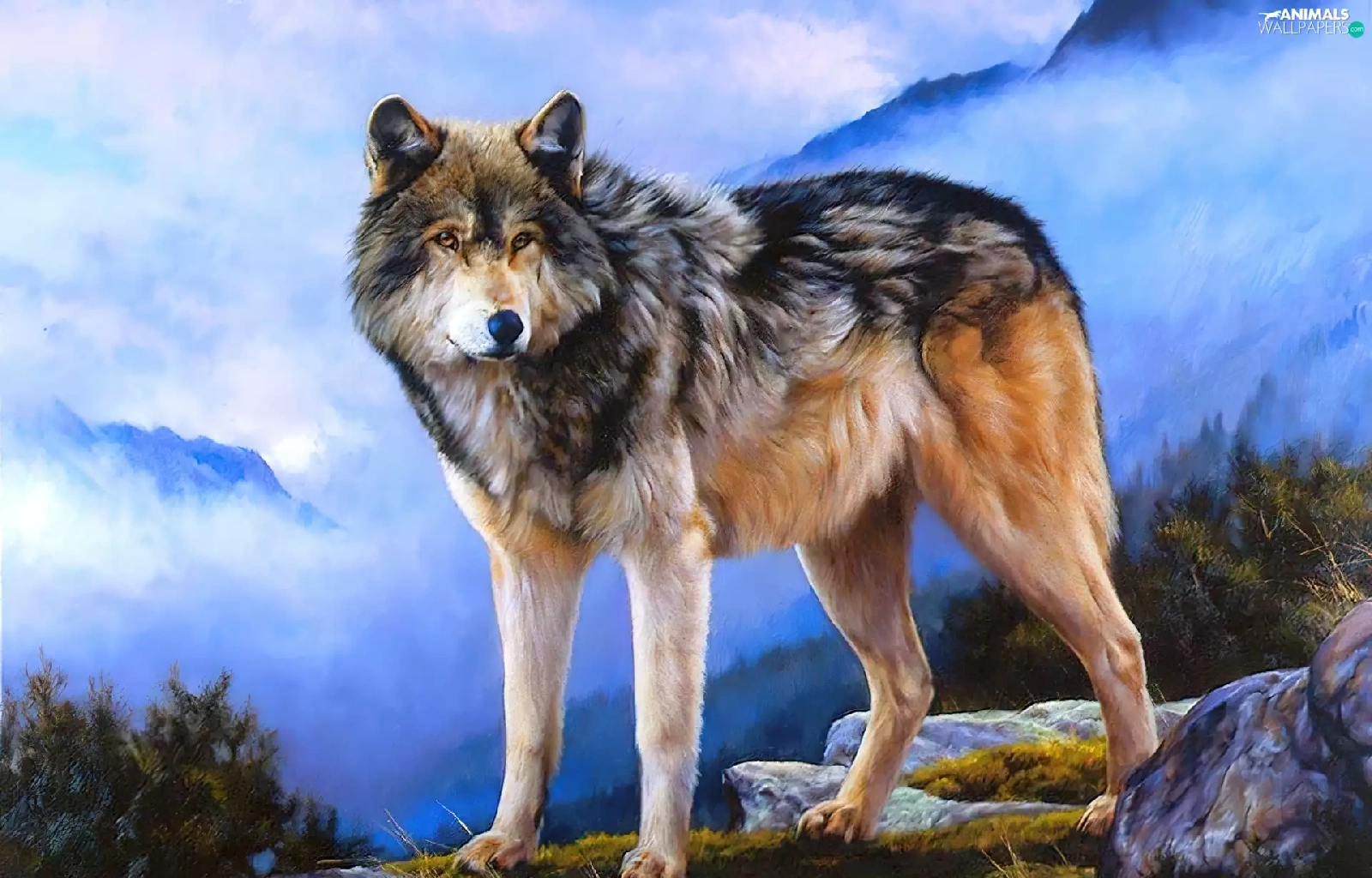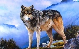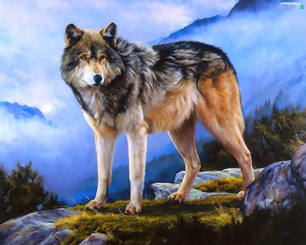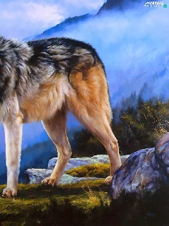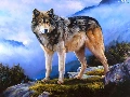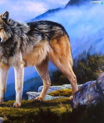 Mountains, Wolf, clouds