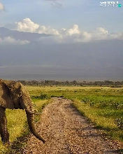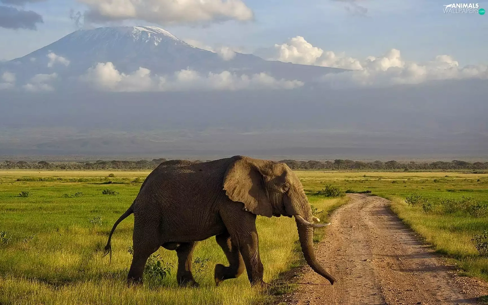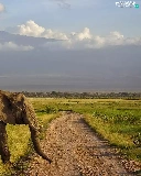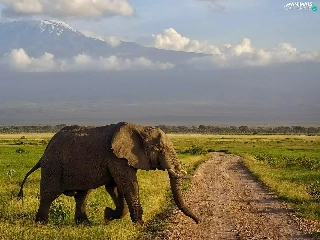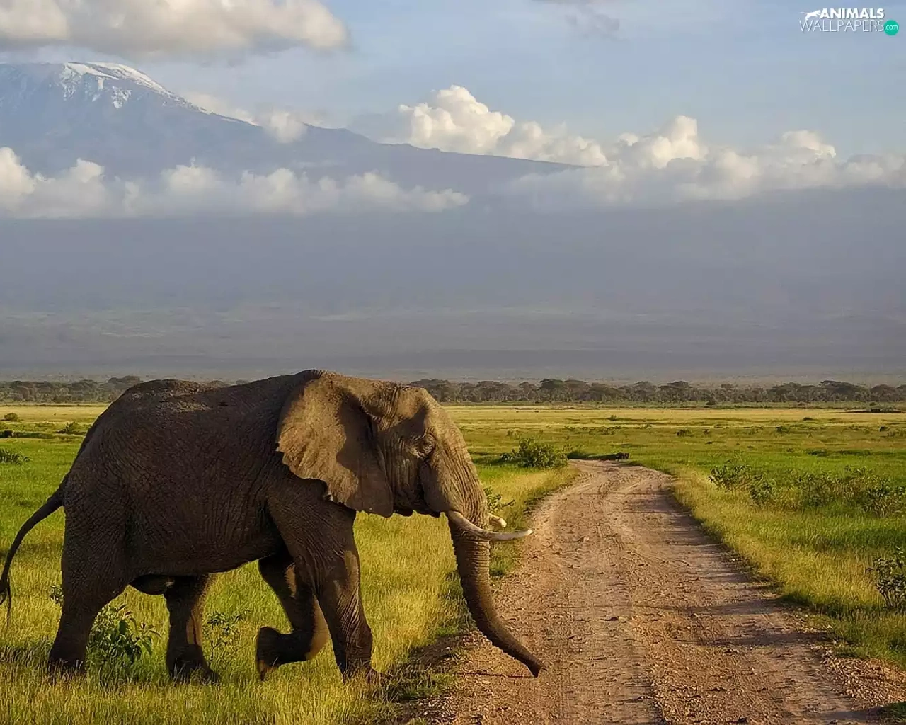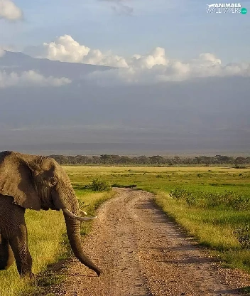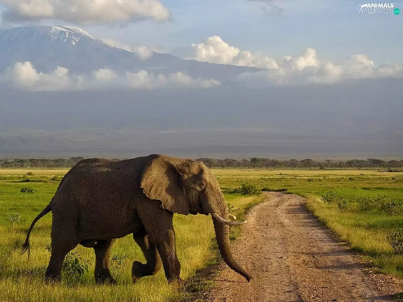 Elephant, Way, grass, Mountains