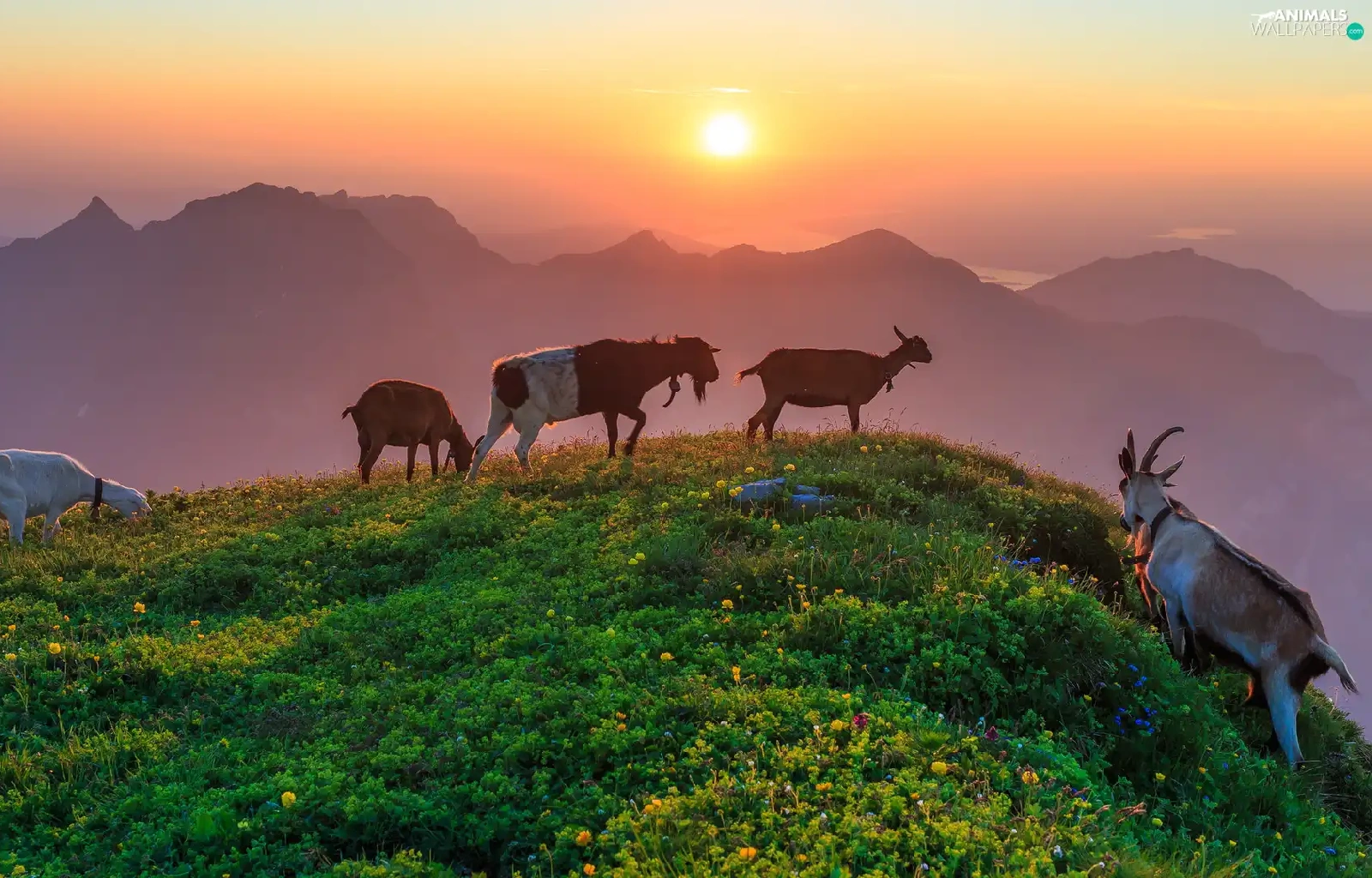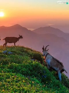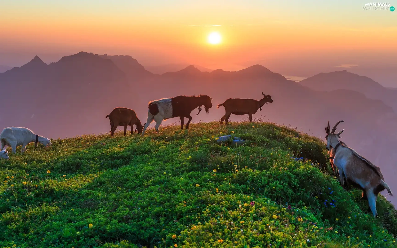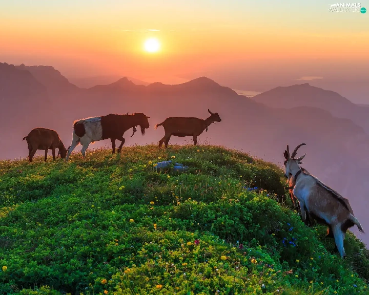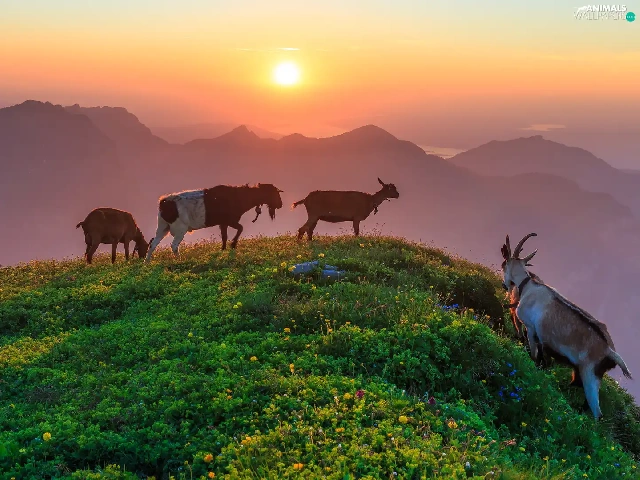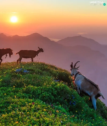 Goats, Mountains, Great Sunsets, Hill