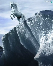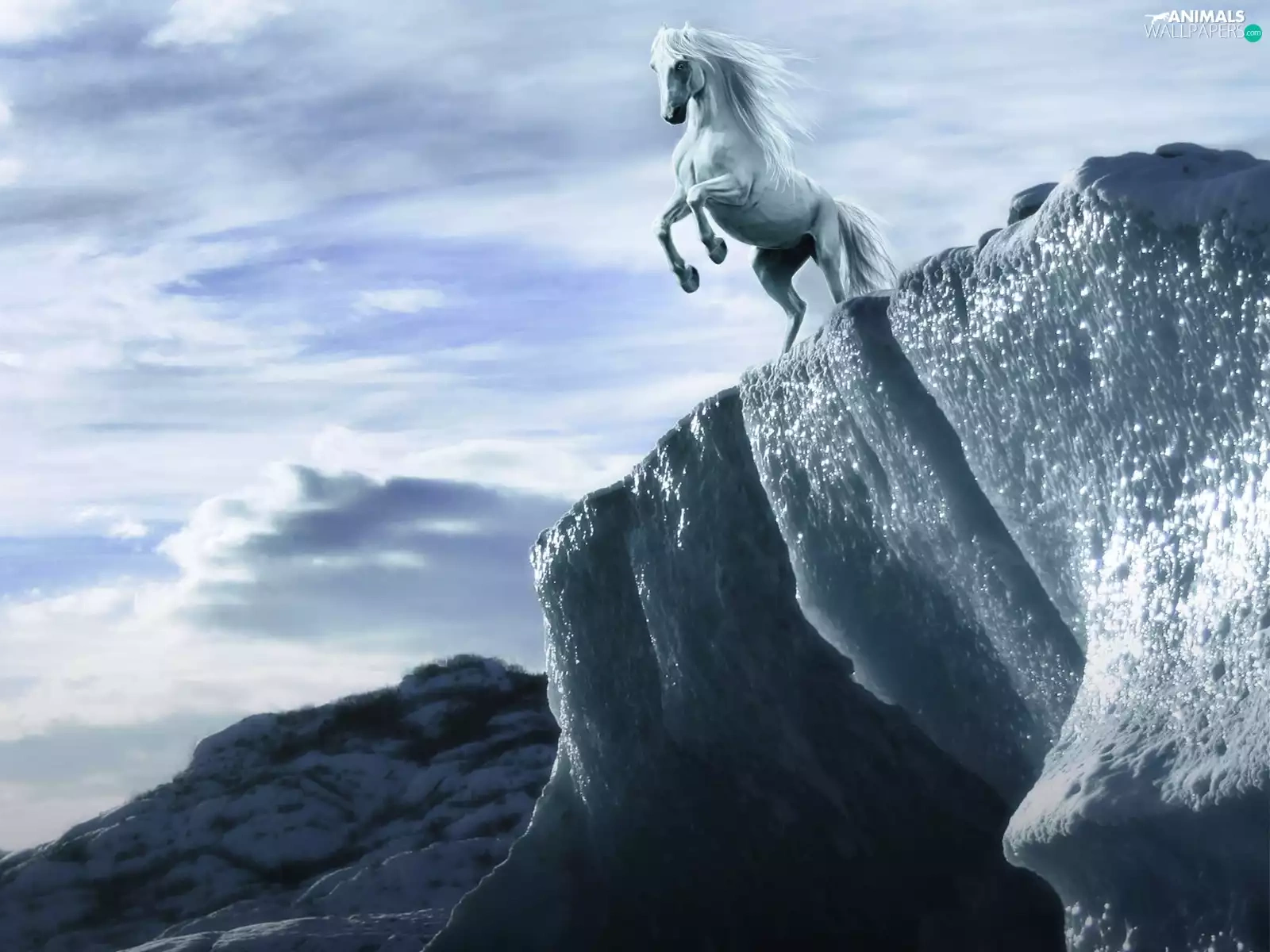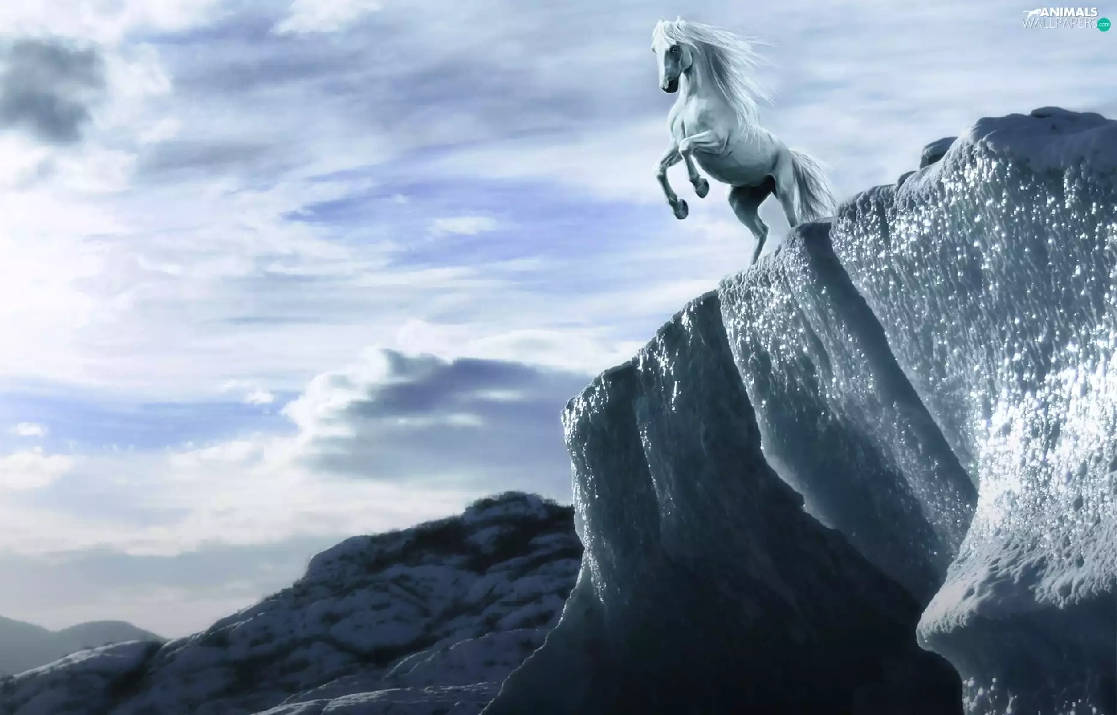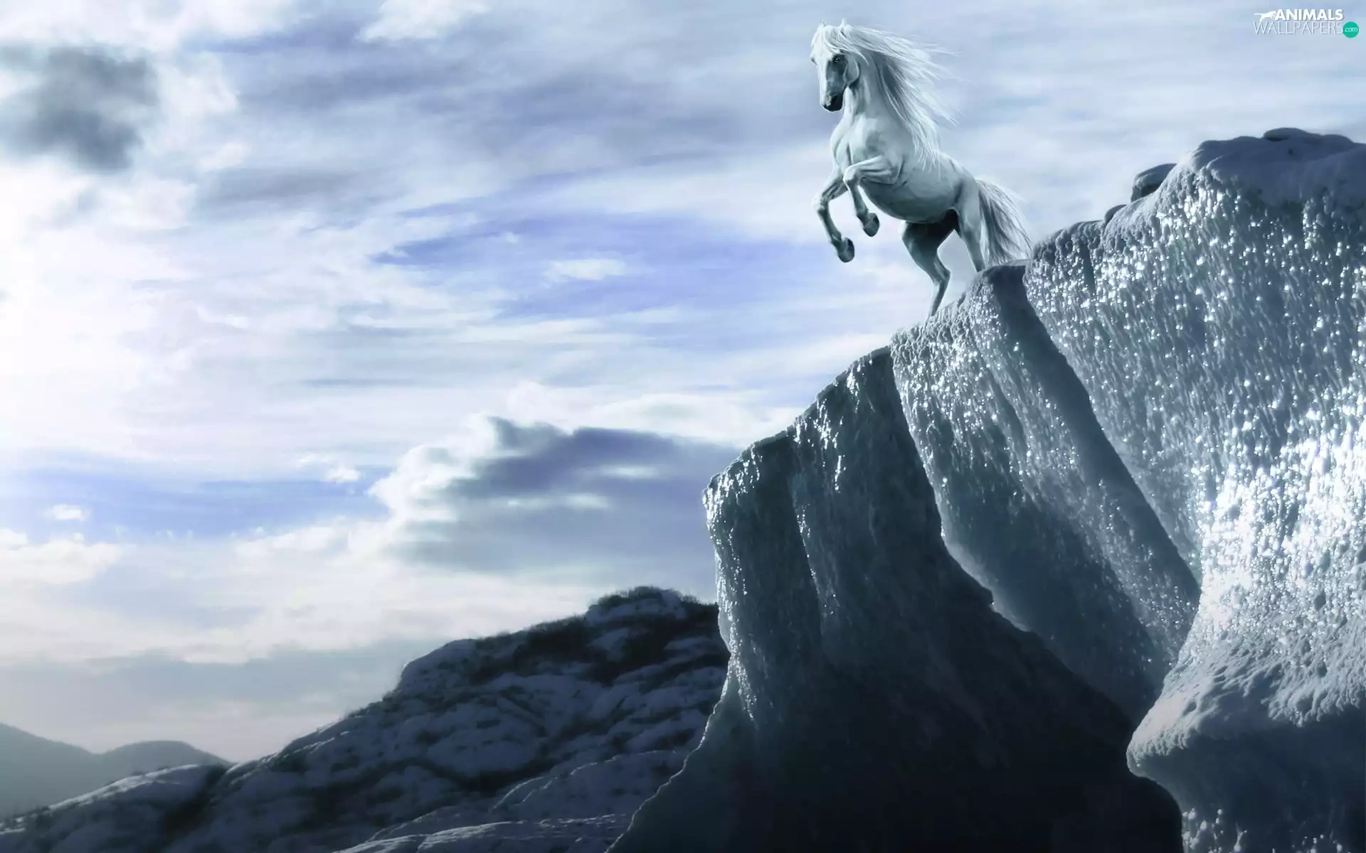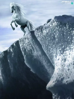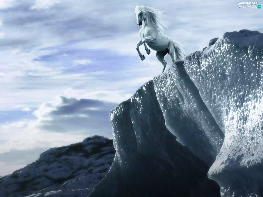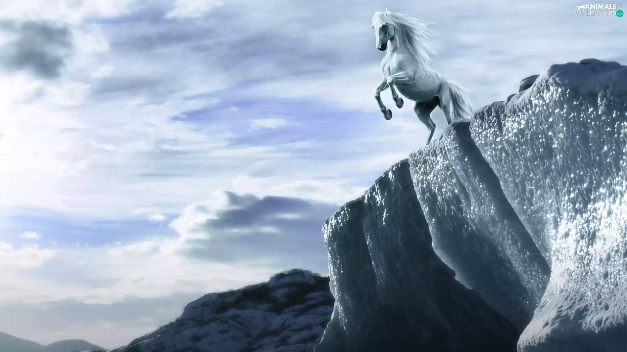 Horse, clouds, graphics, Mountains