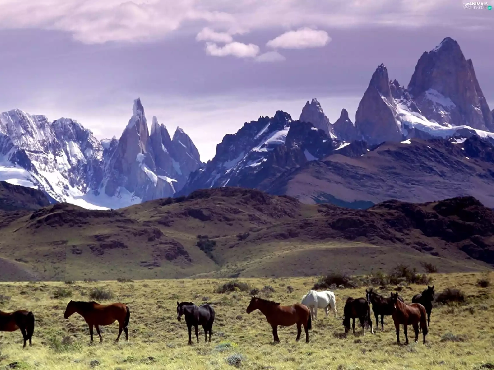 Mountains, herd, horses