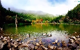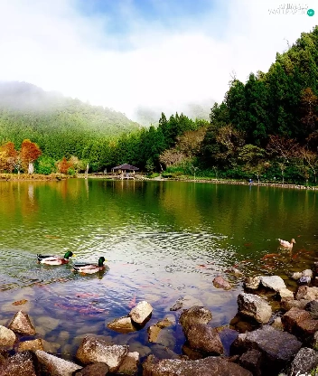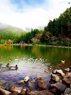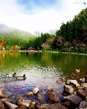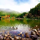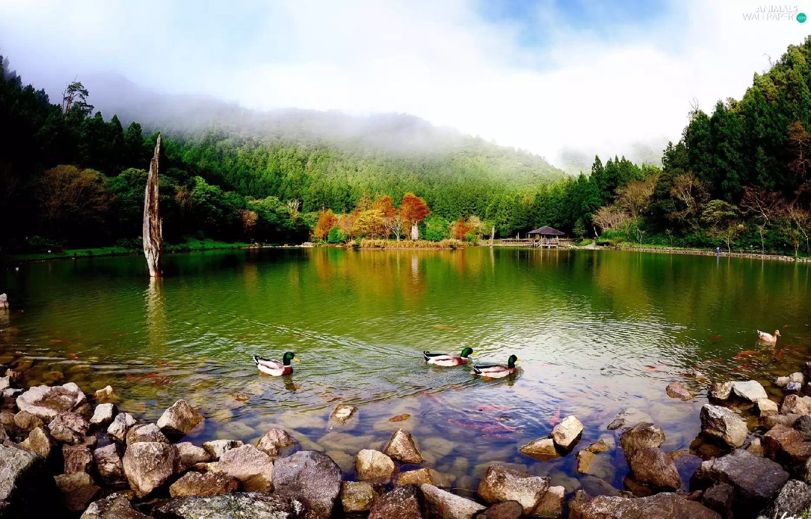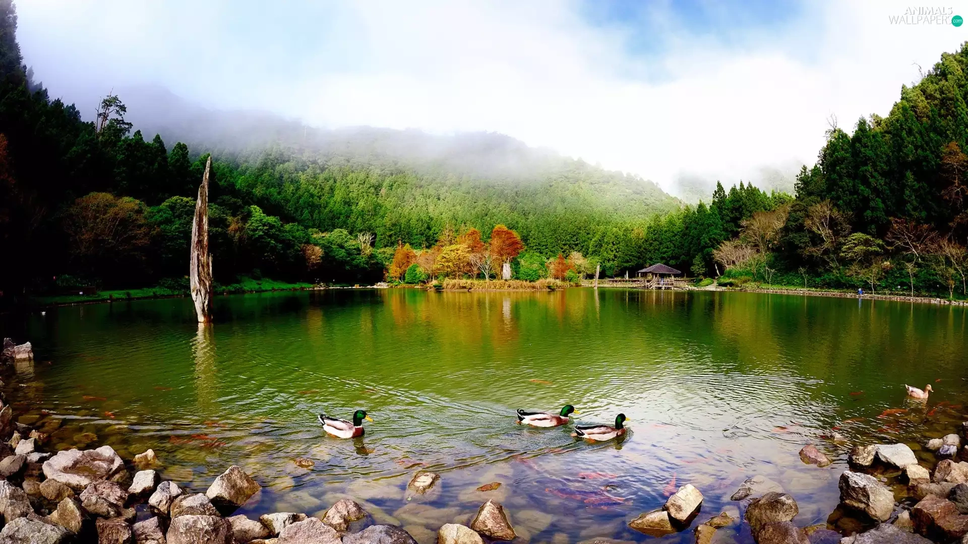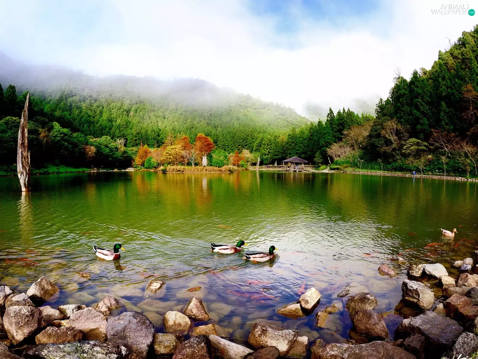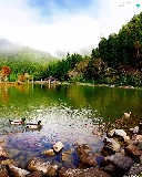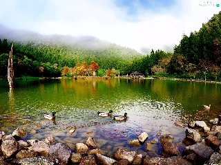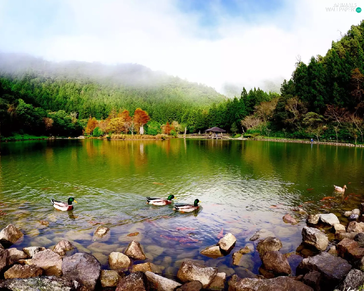 lake, woods, ducks, Mountains