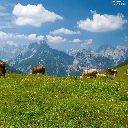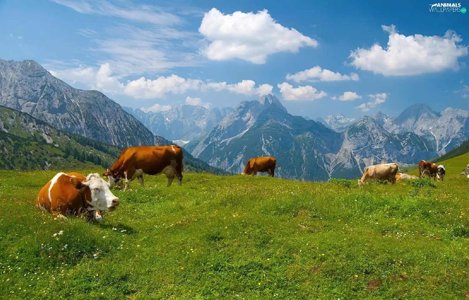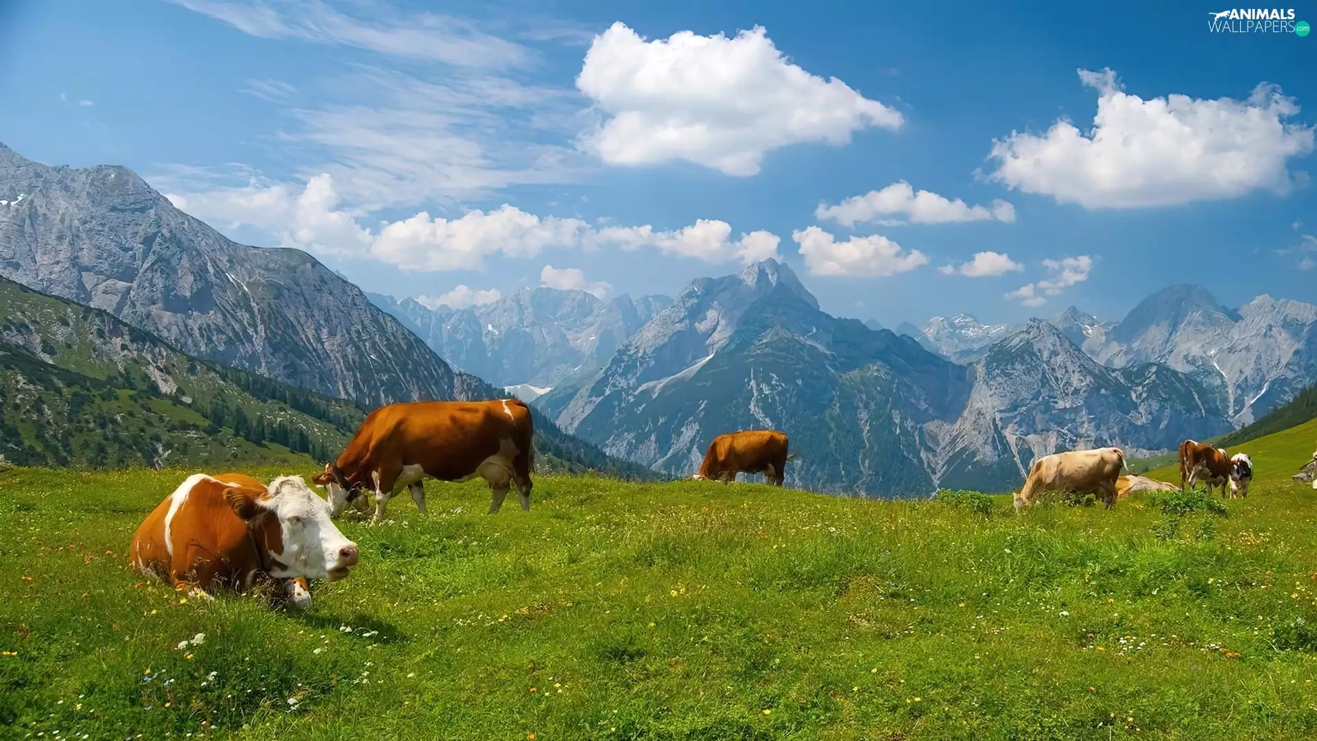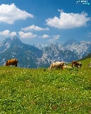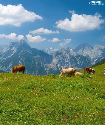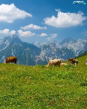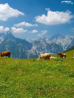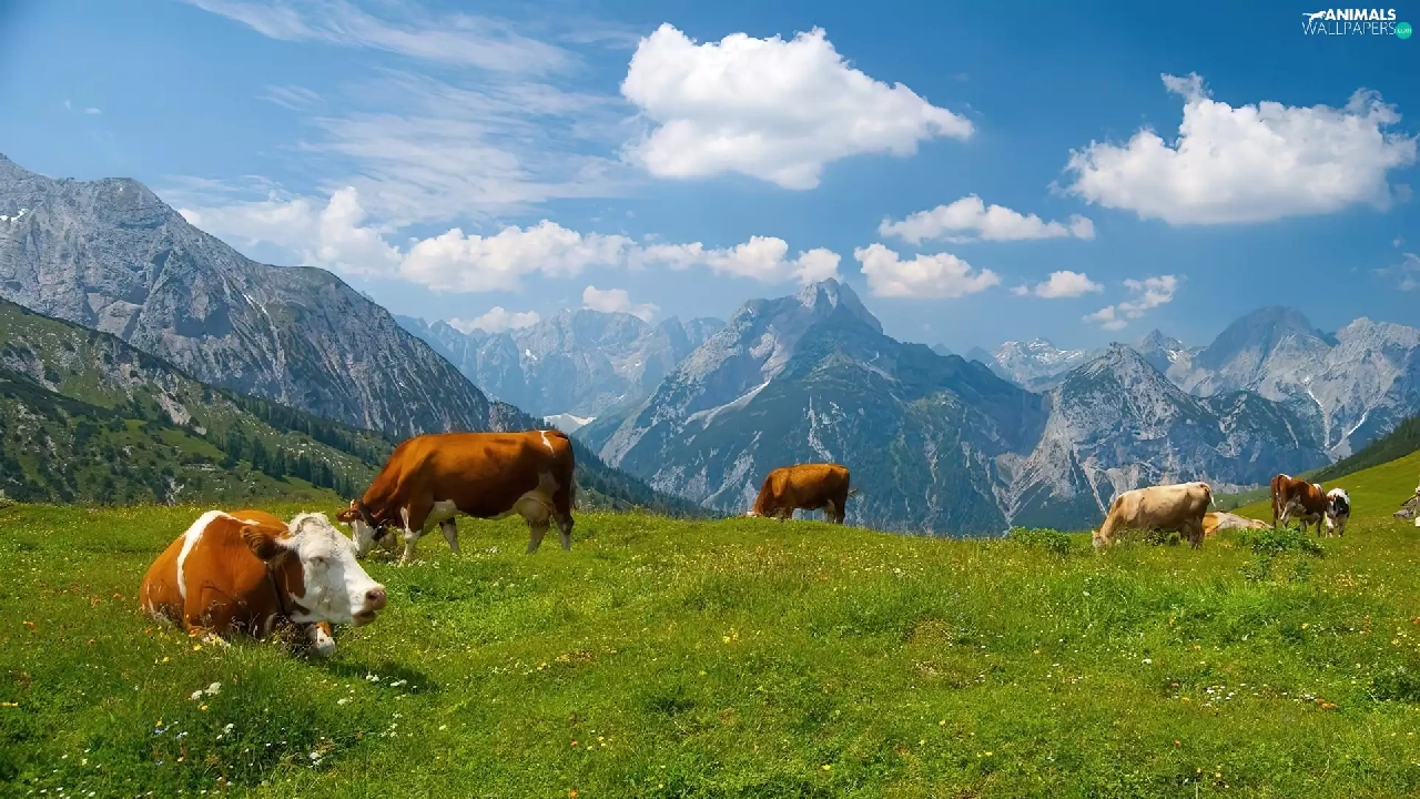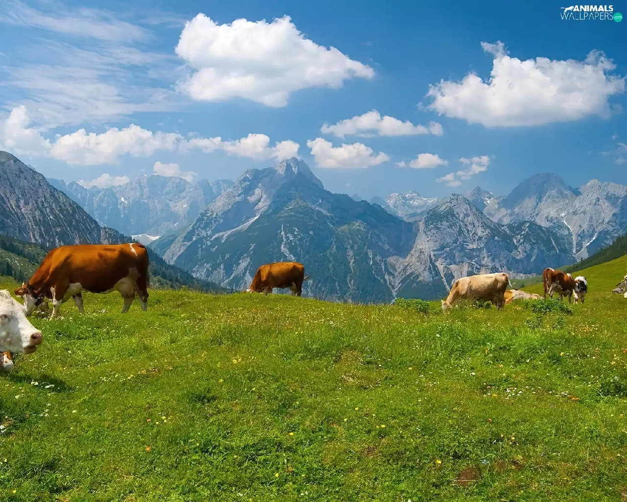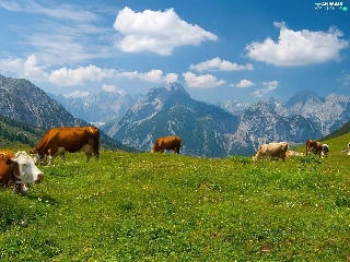 Mountains, Cows, Meadow