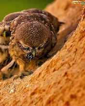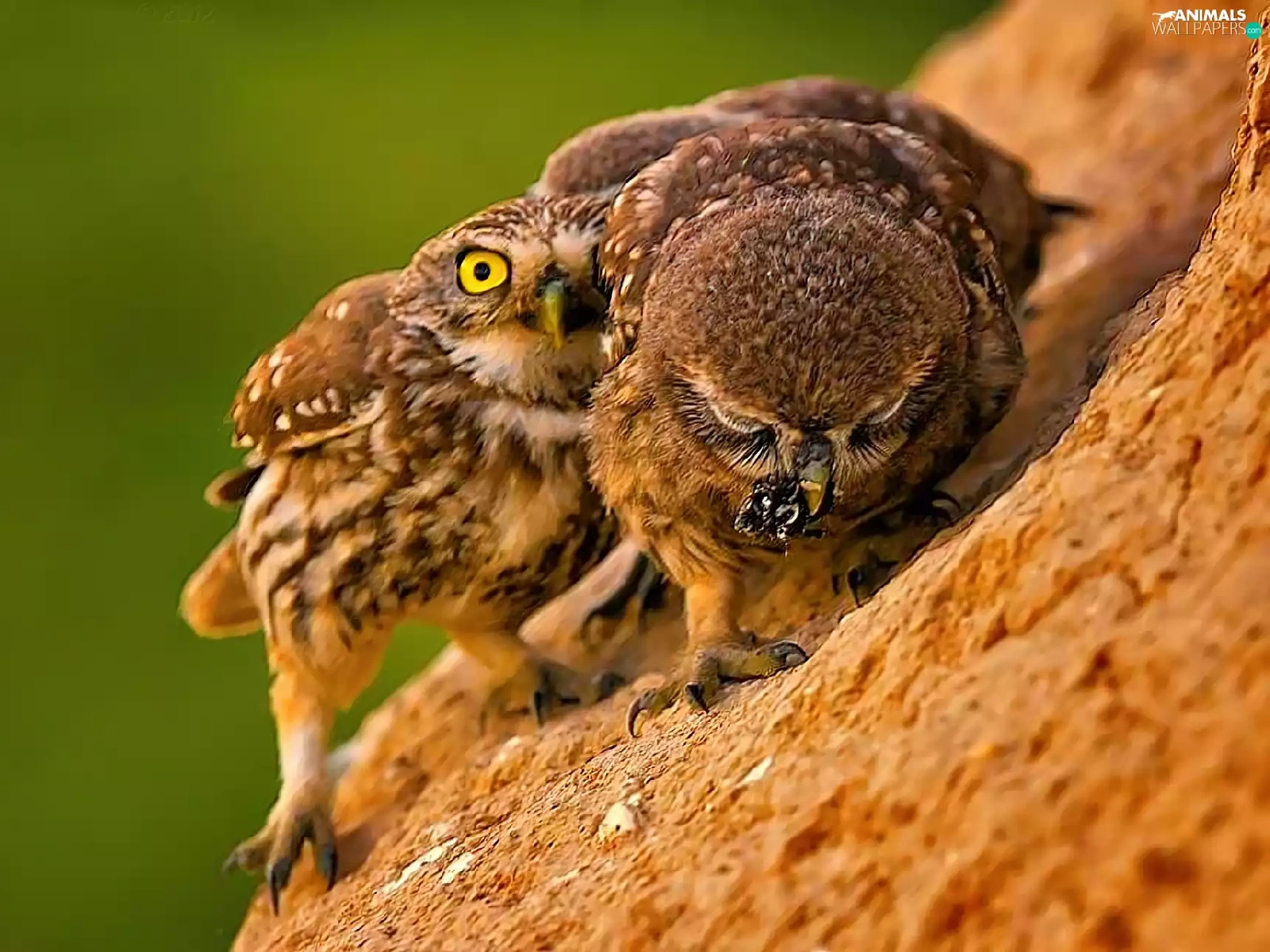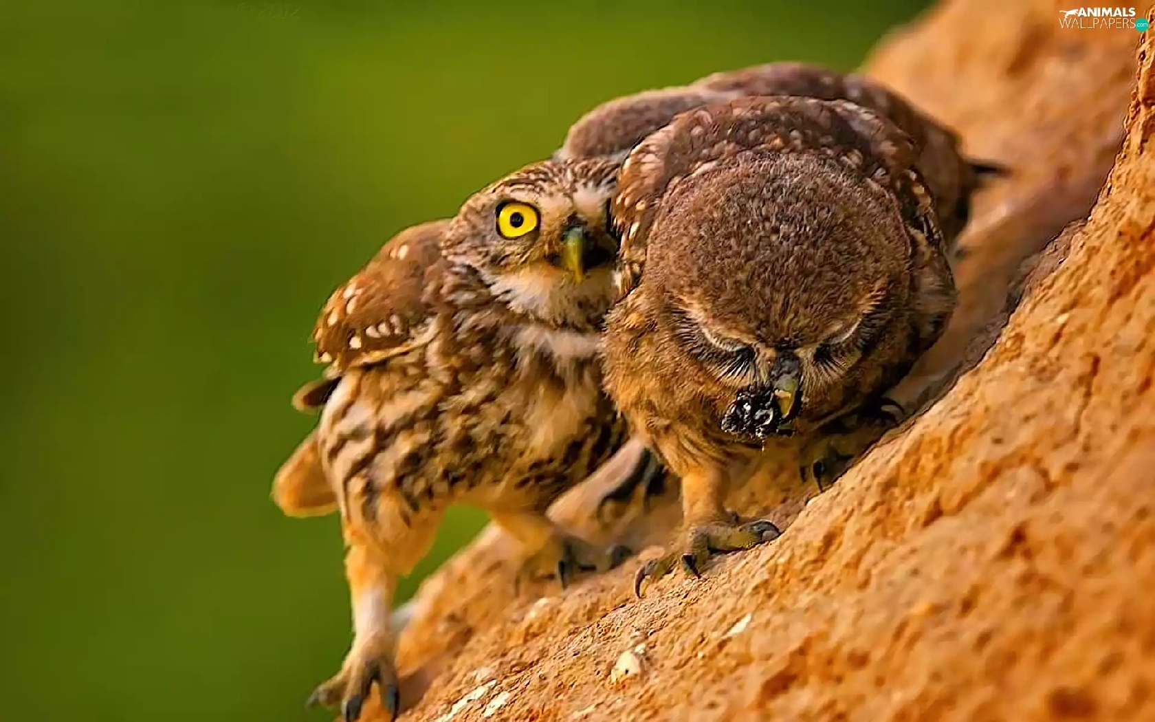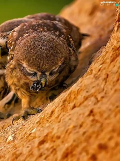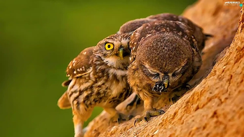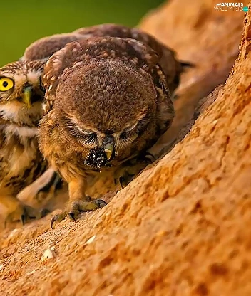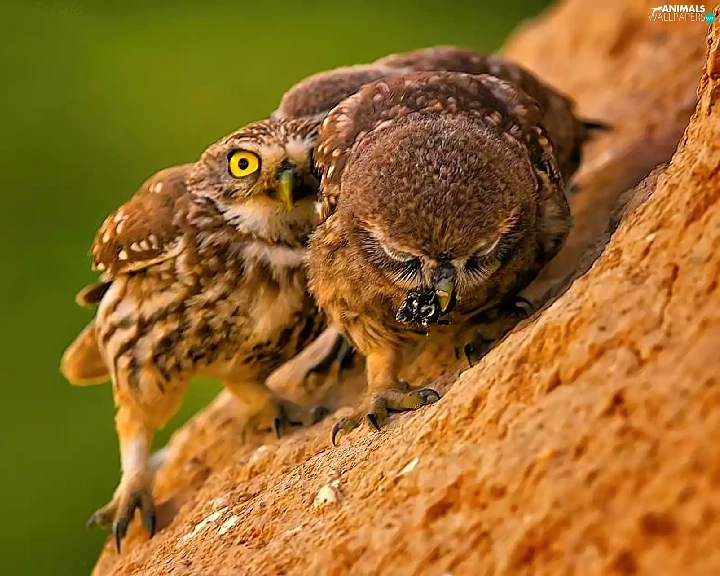 Owls, slope, feeding, mountains