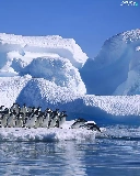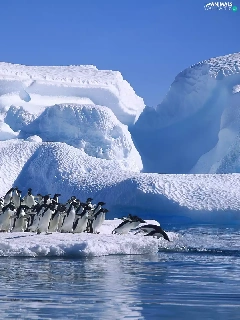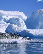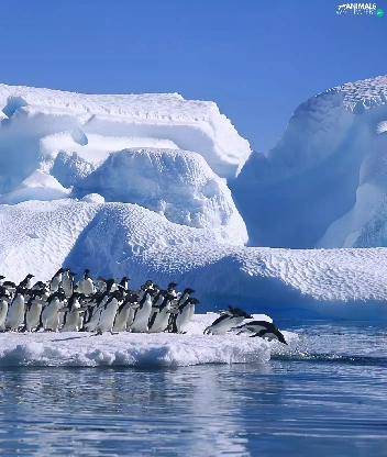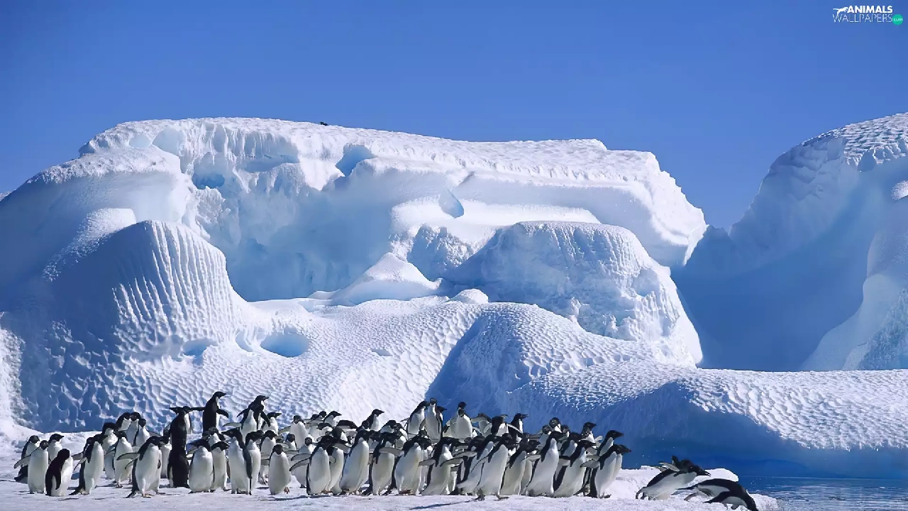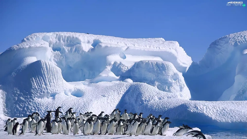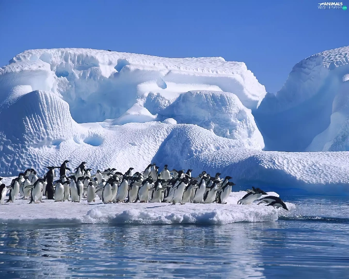 penguin, Ice, Ocean, mountains