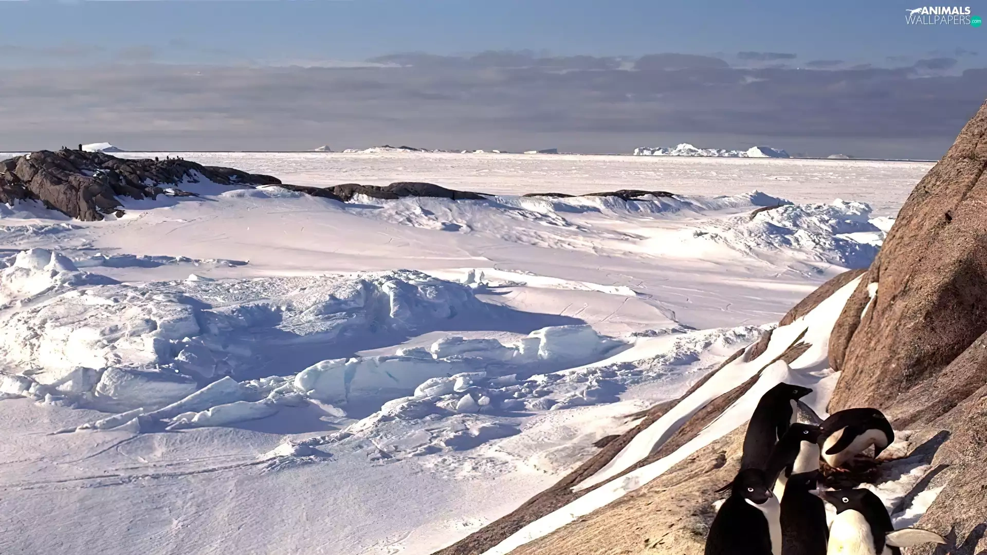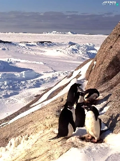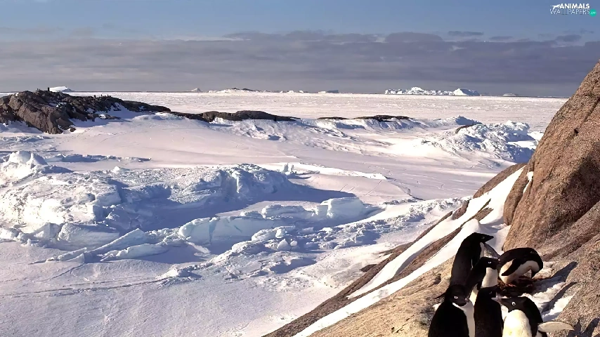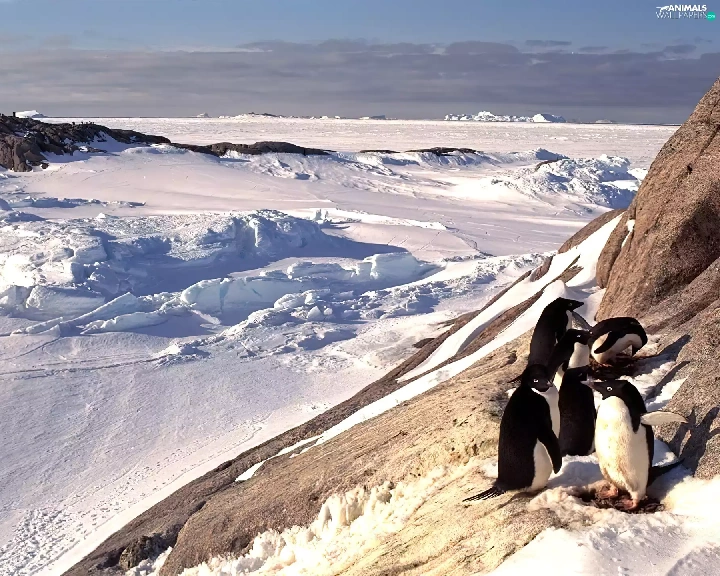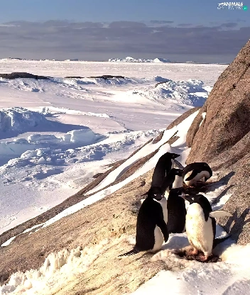 Mountains, snow, penguin