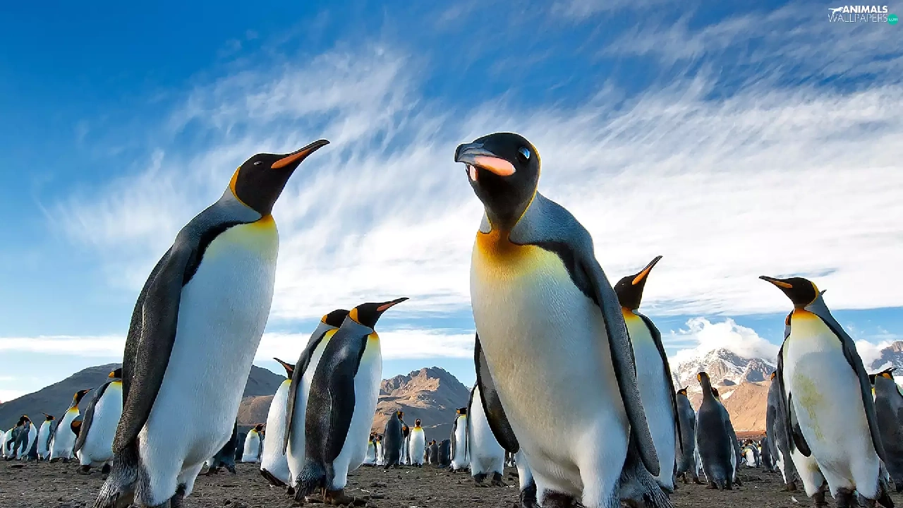 Mountains, team, penguins