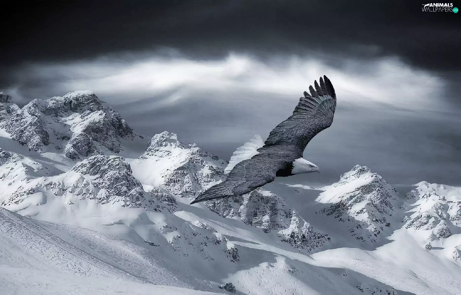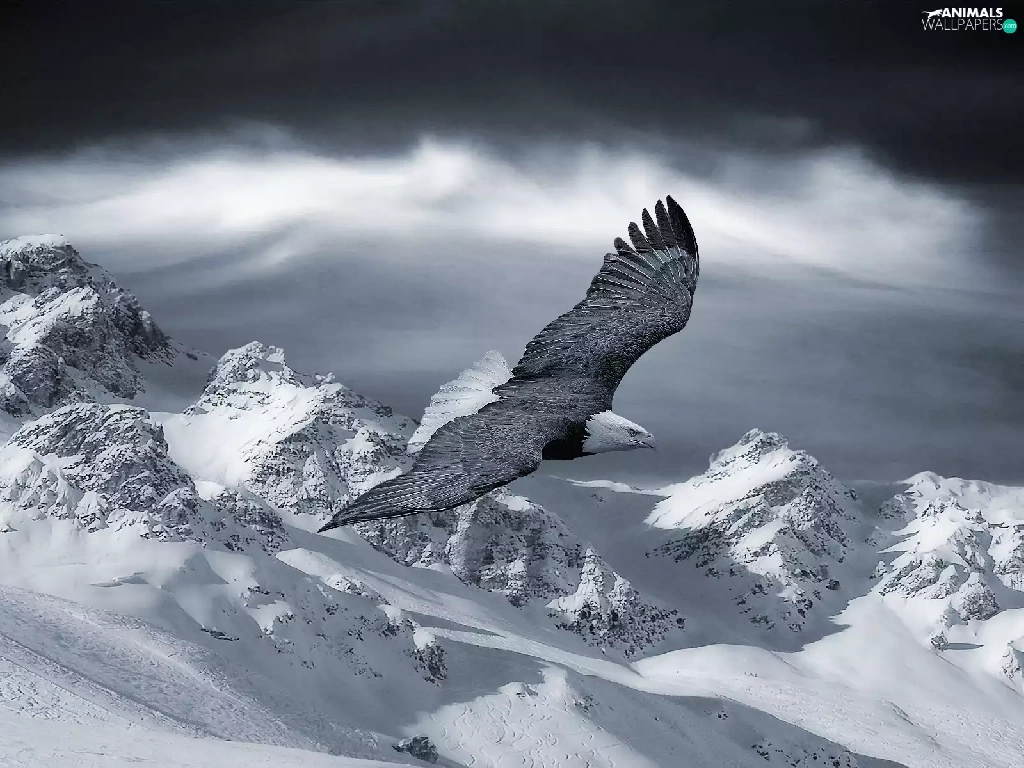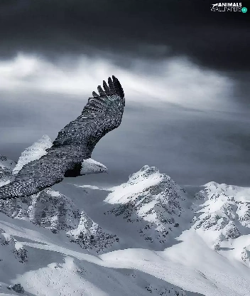 Mountains, eagle, snow