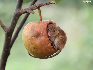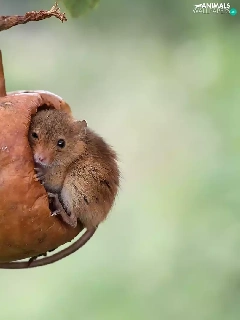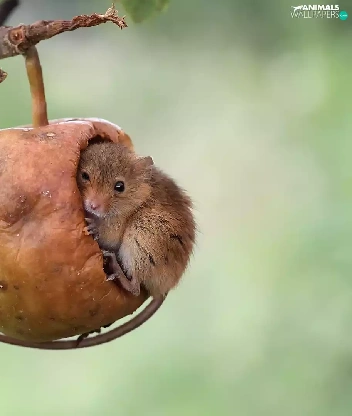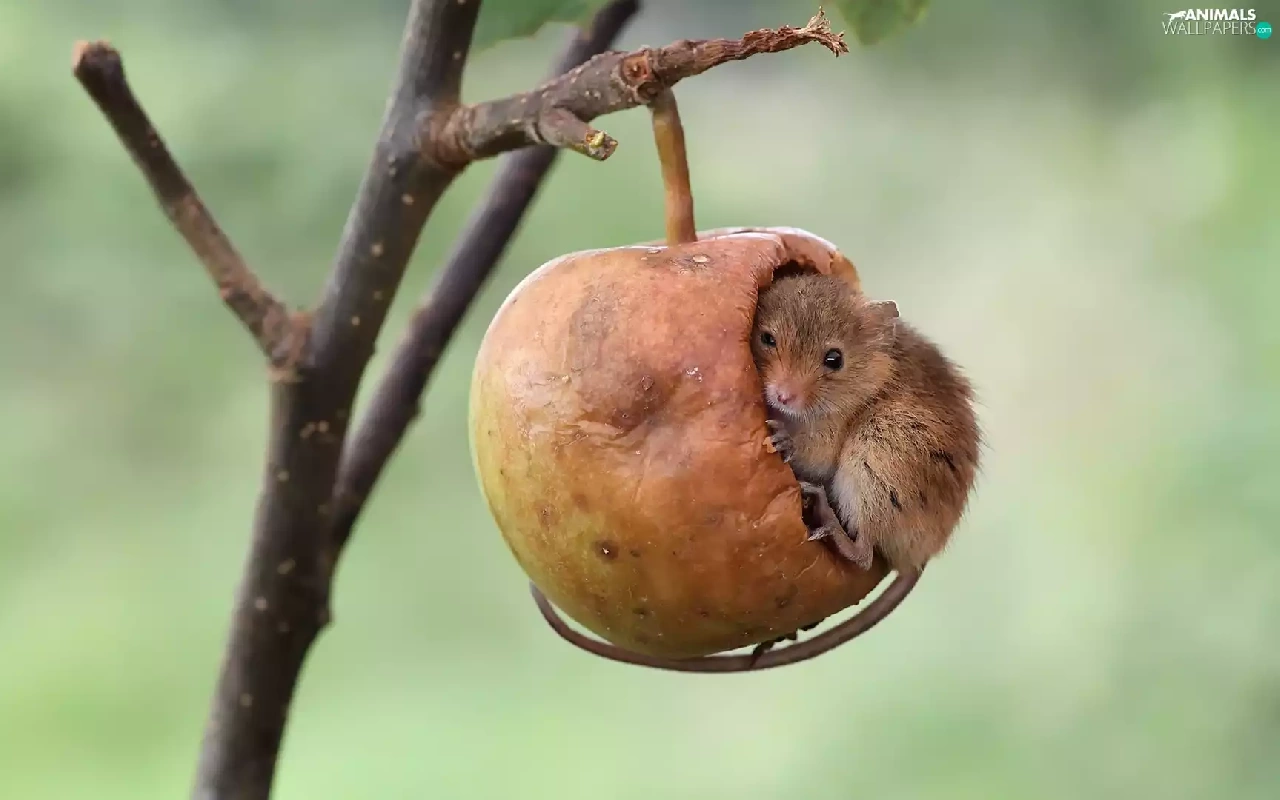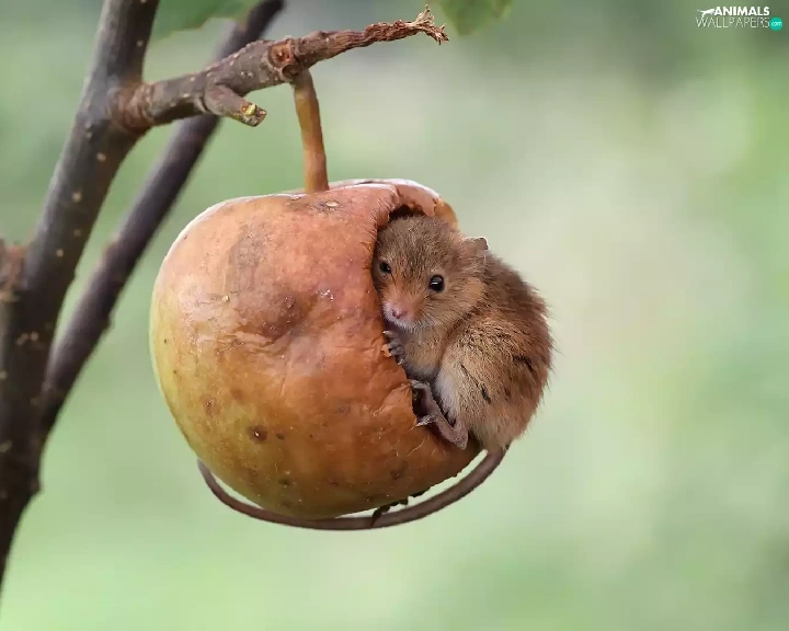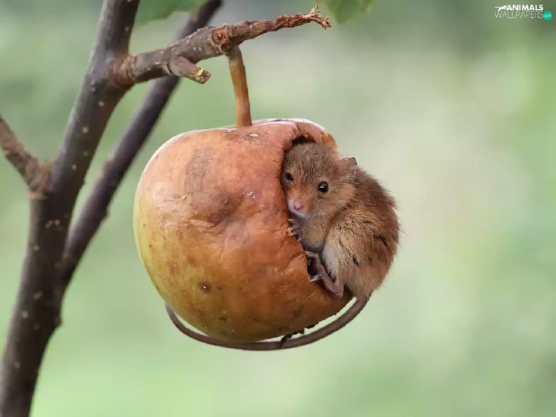 twig, mouse, Harvest Mouse, Apple