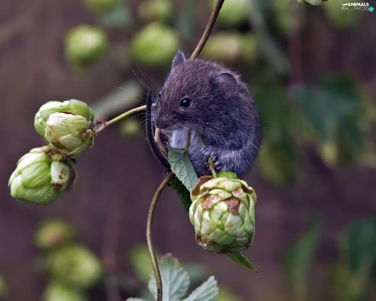 small, cones, hop, mouse