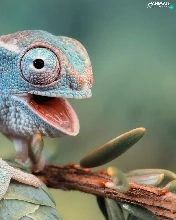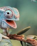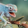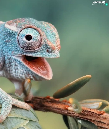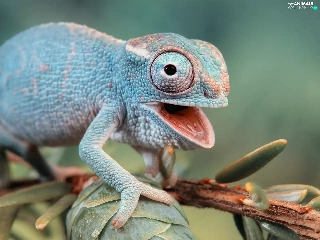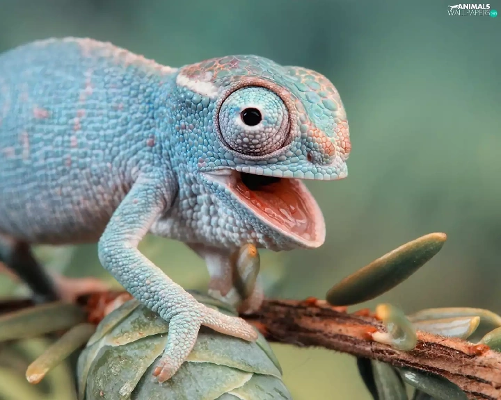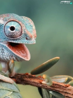 open, mouth, Cameleon, twig, blue