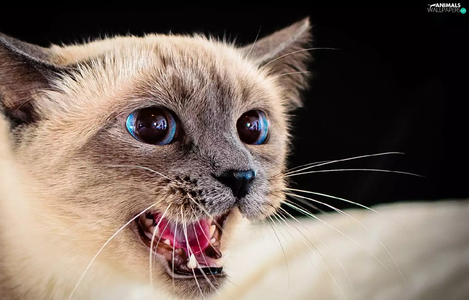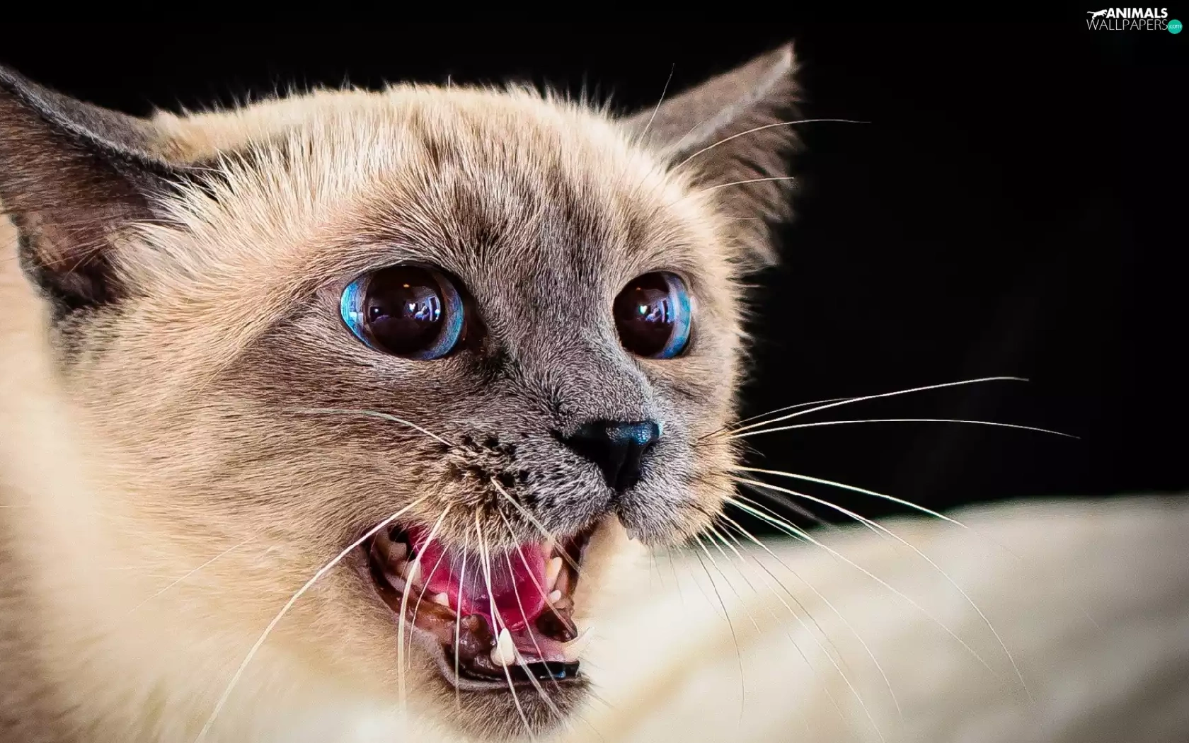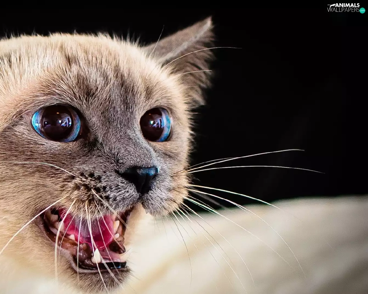 Blue, cat, open, mouth, Eyes, siamese