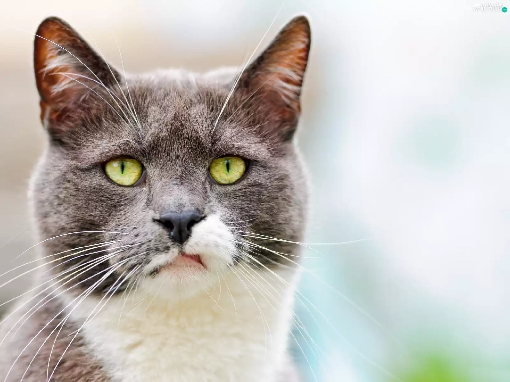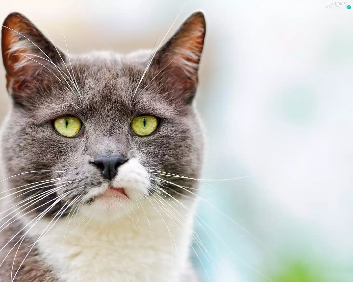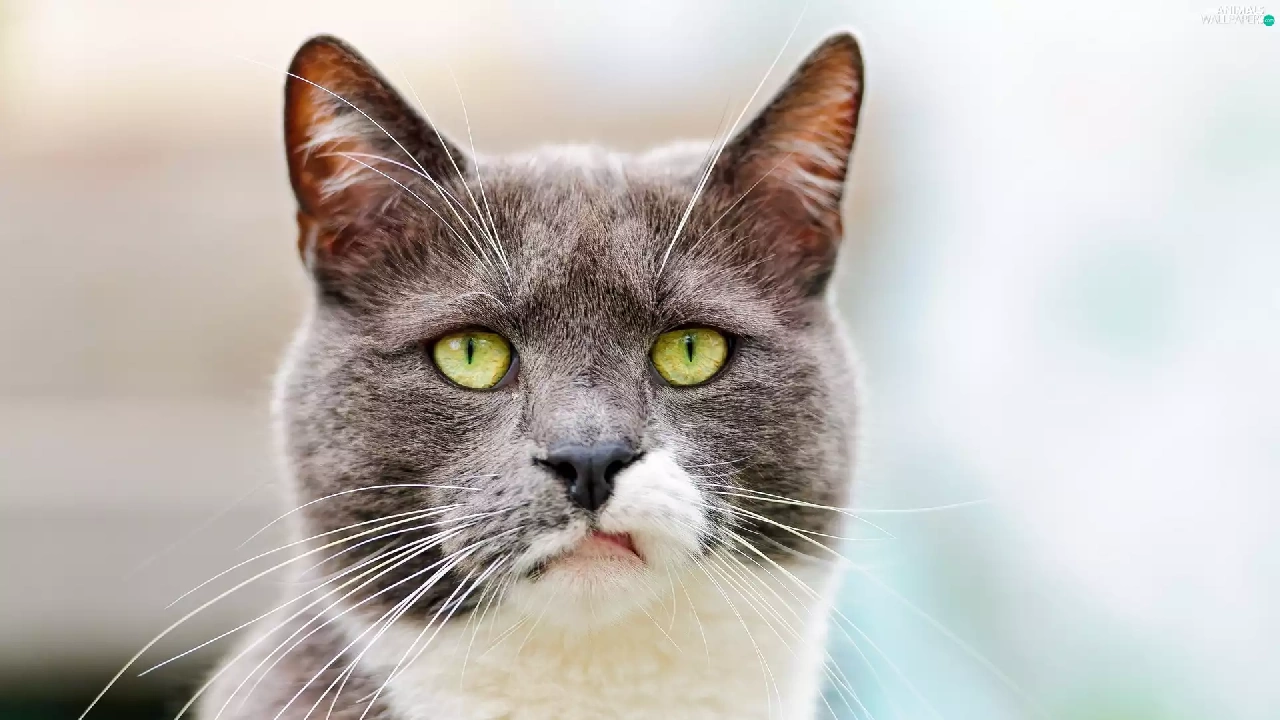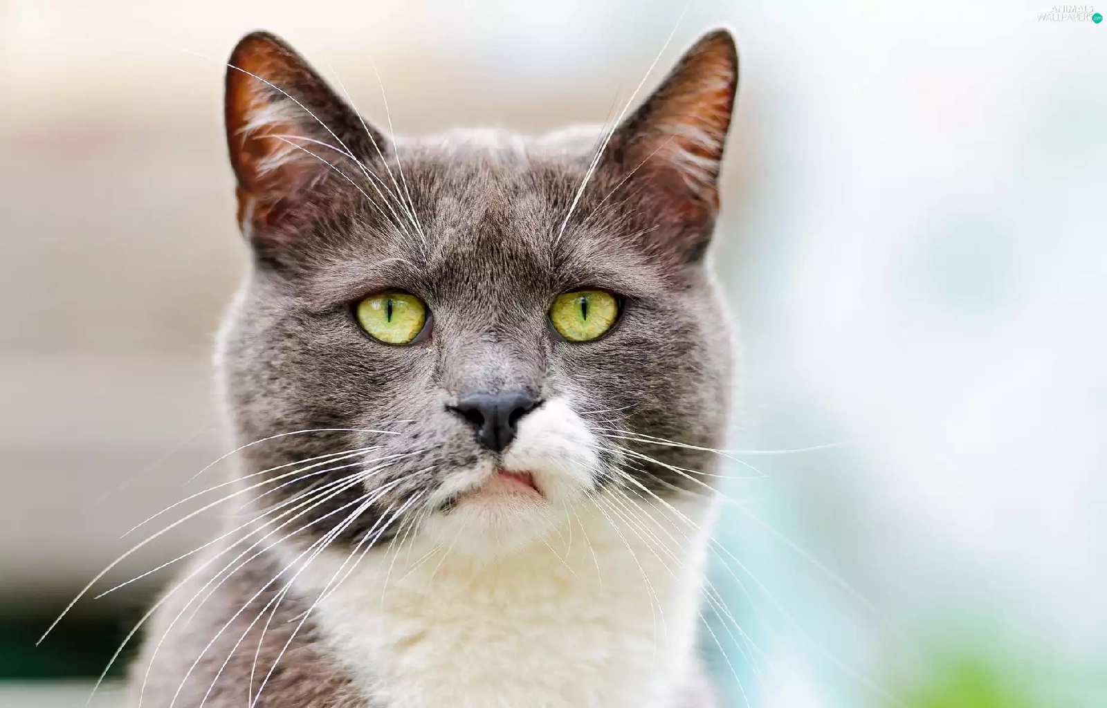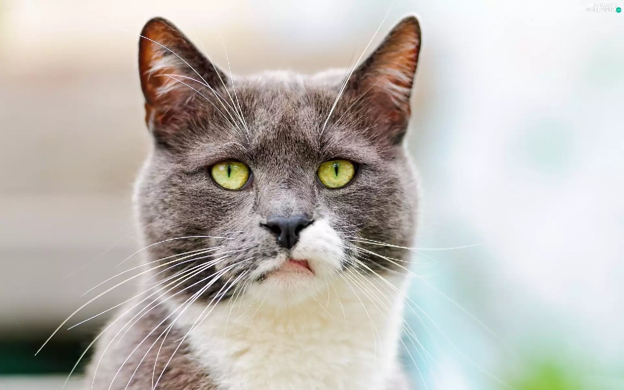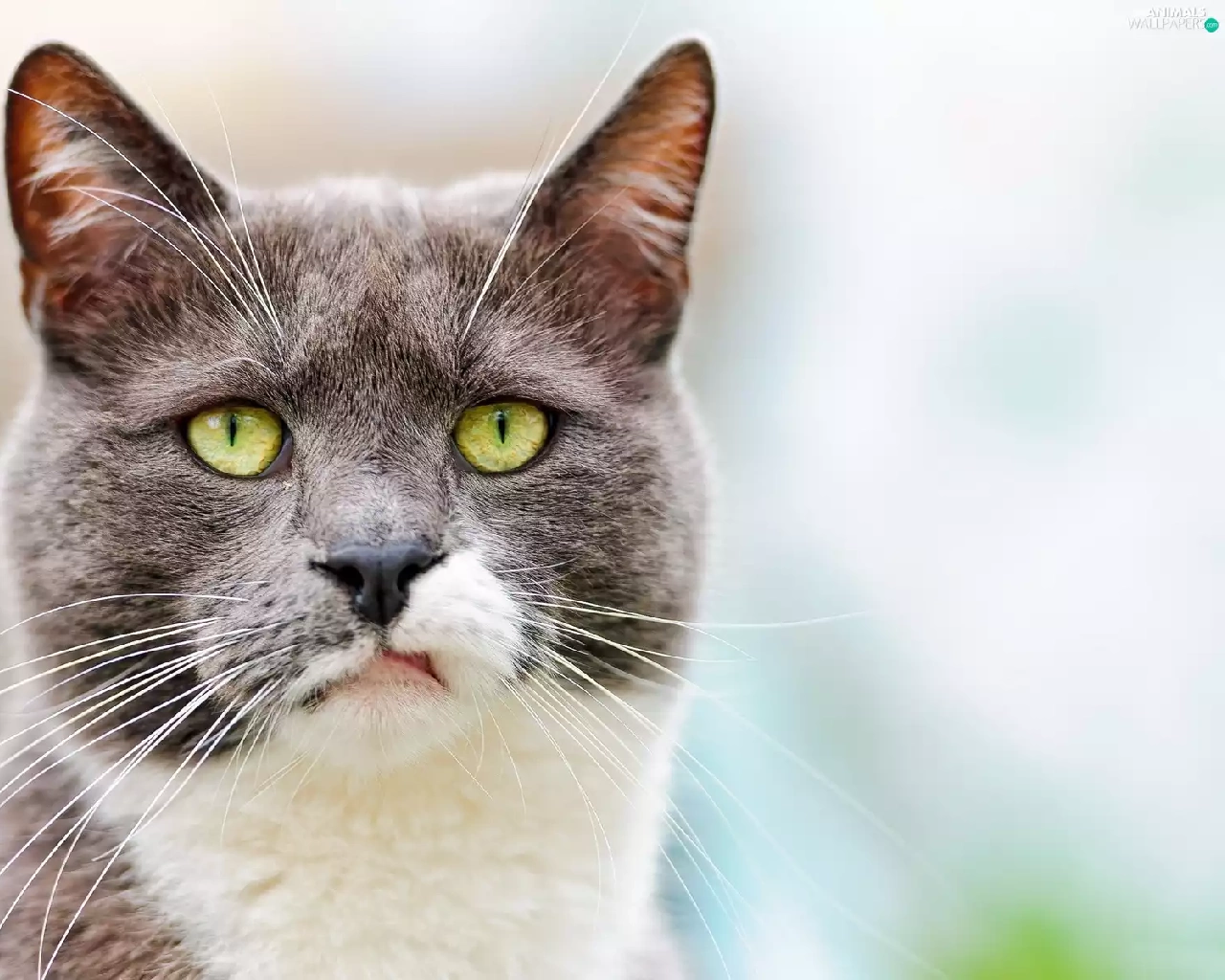 green ones, White, distorted, cat, gray, Eyes, mouth