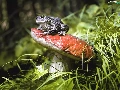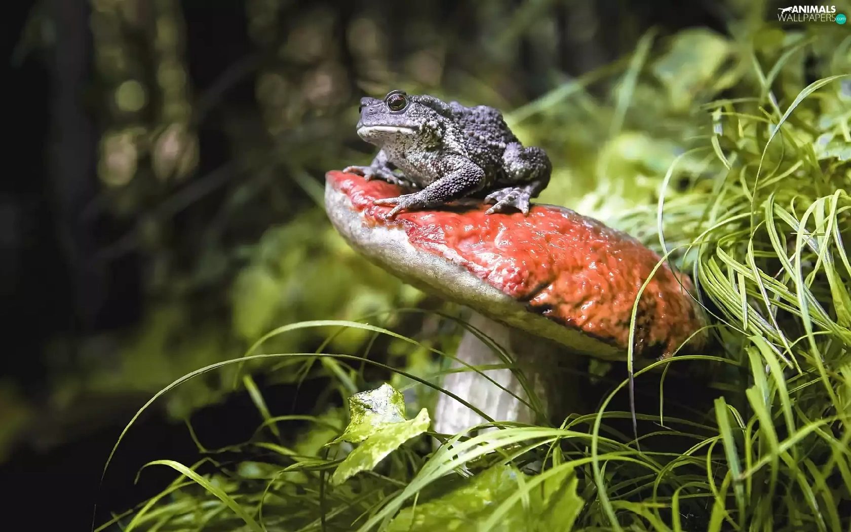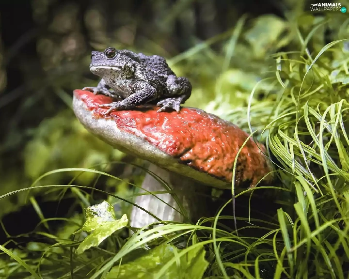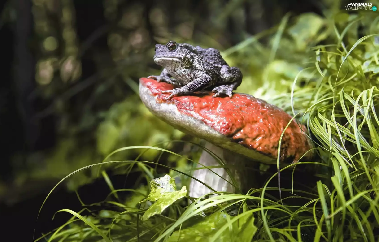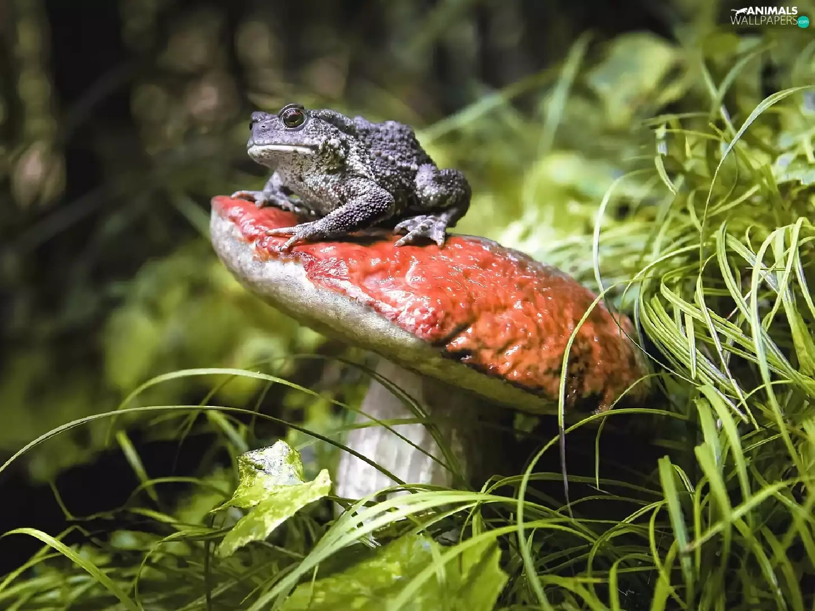 Common Toad, grass, Leccinum Red, strange frog, Mushrooms