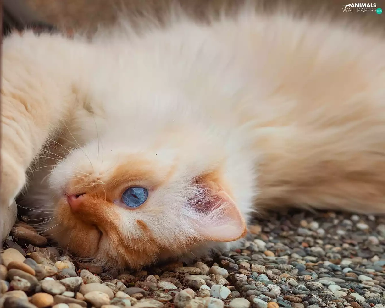 white and red, muzzle, Stones, cat