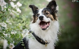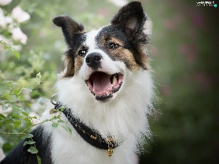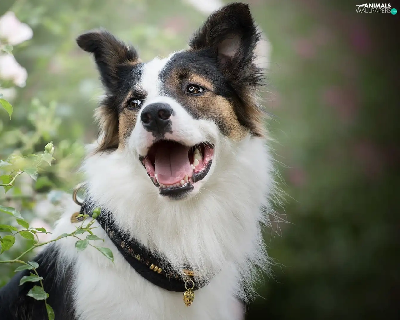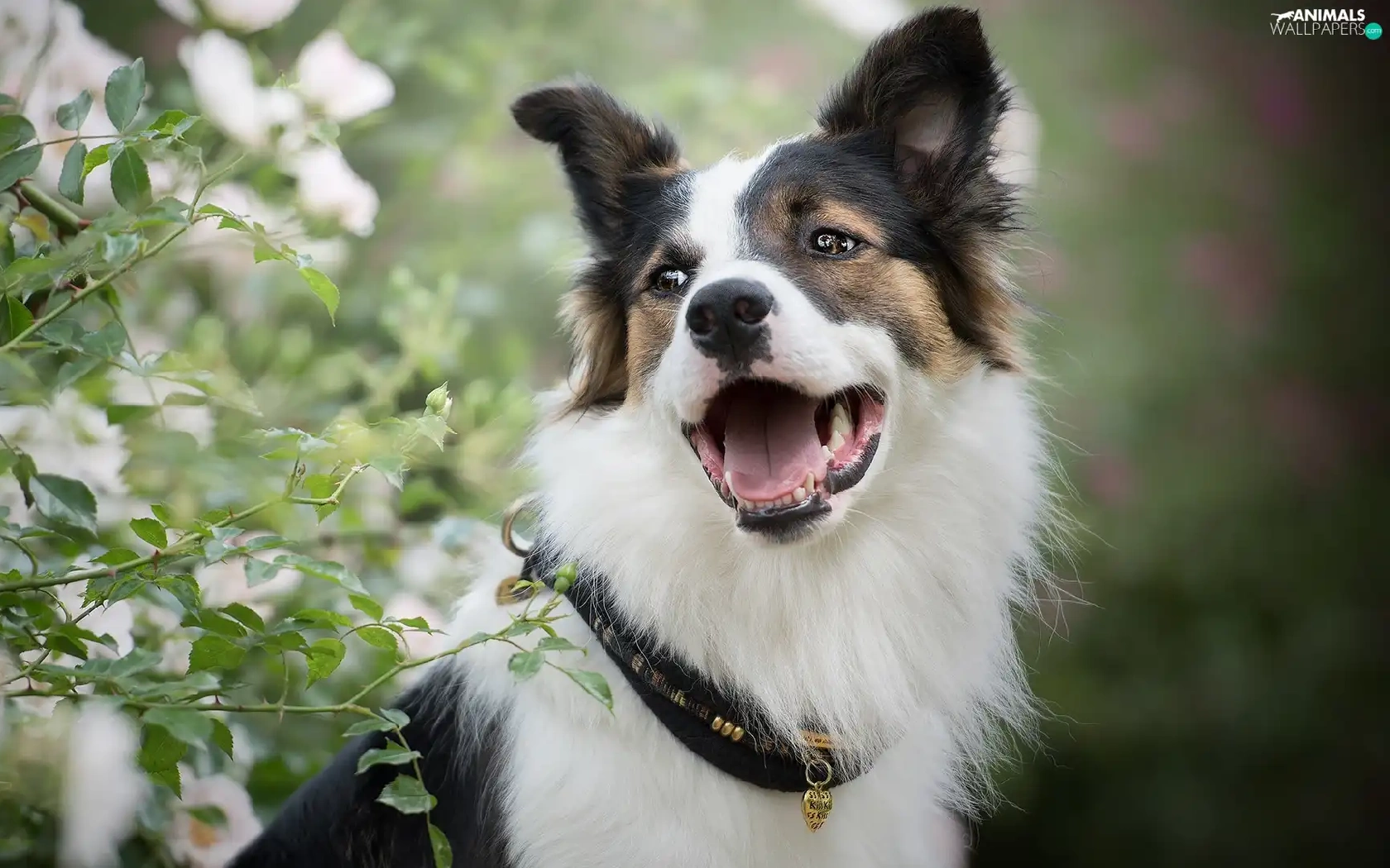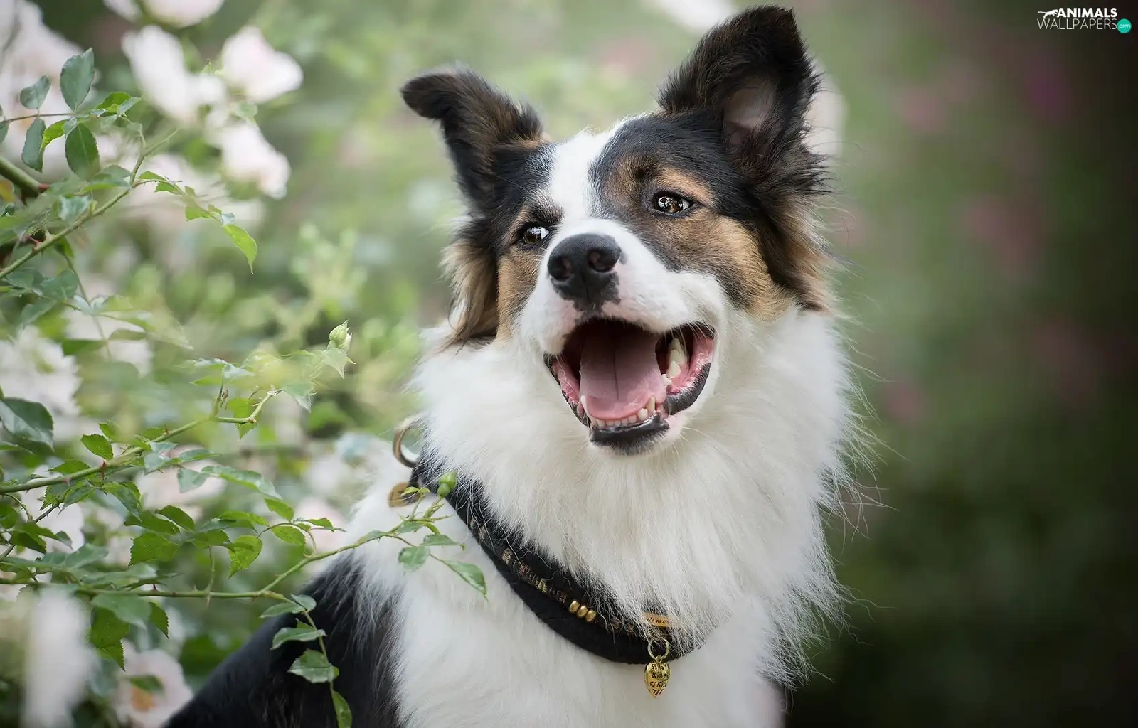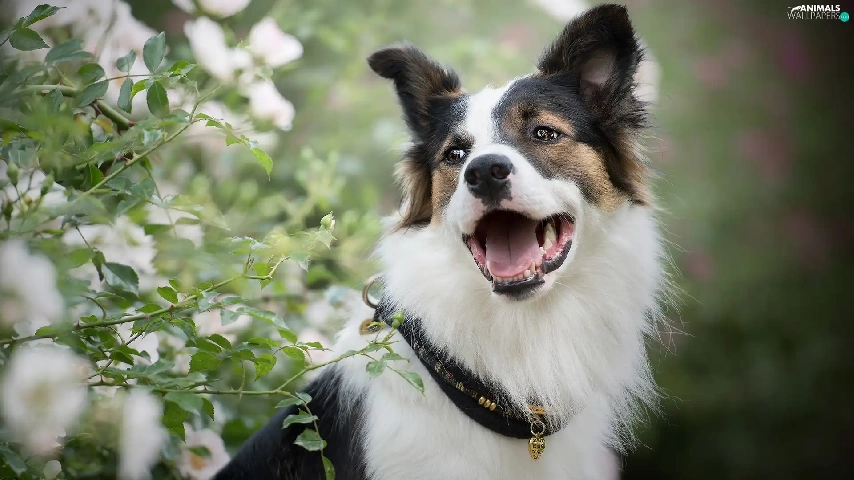dog-collar, dog, Bush, Flowers, Heart teddybear, muzzle