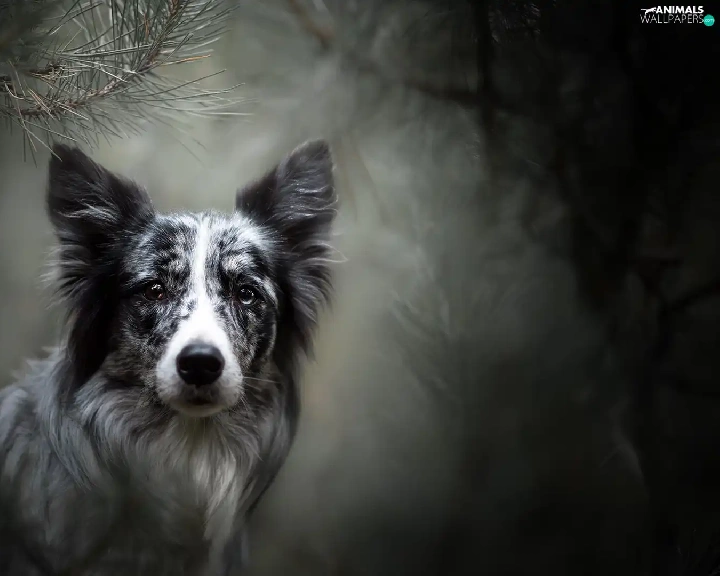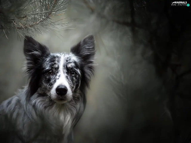muzzle, dog, fuzzy, background, Twigs, Border Collie