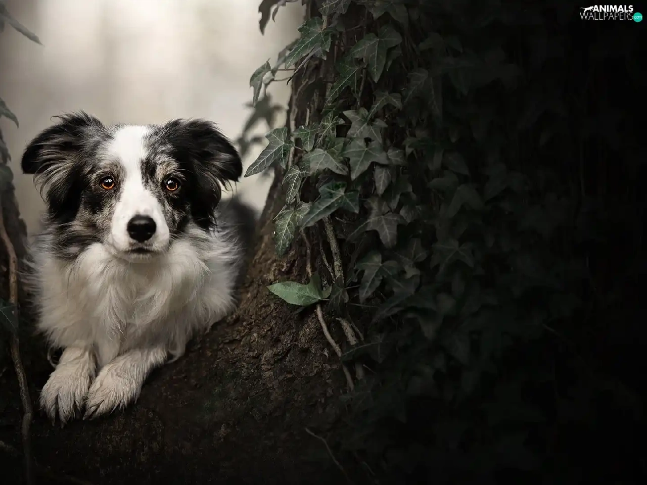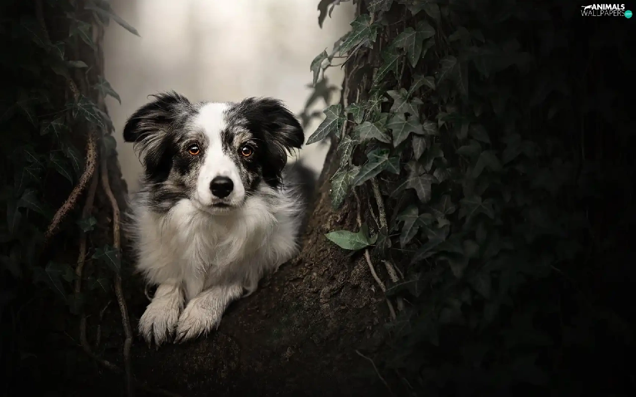 muzzle, dog, plant, Leaf, trees, Border Collie