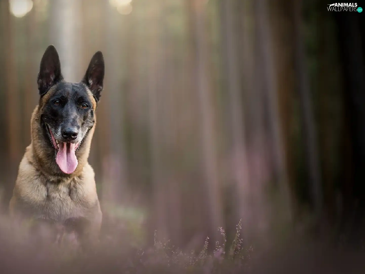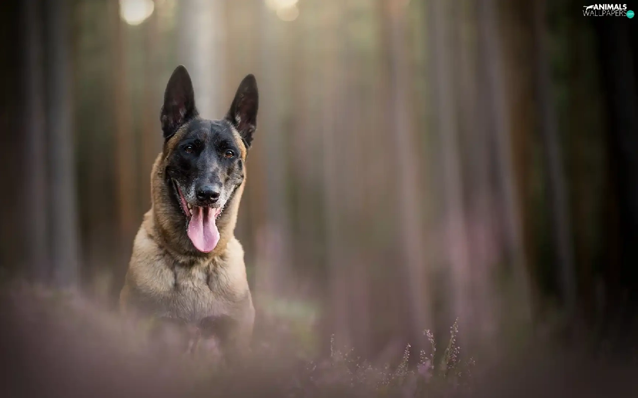 tongue, Belgian Shepherd Malinois, fuzzy, muzzle, dog, heathers, background