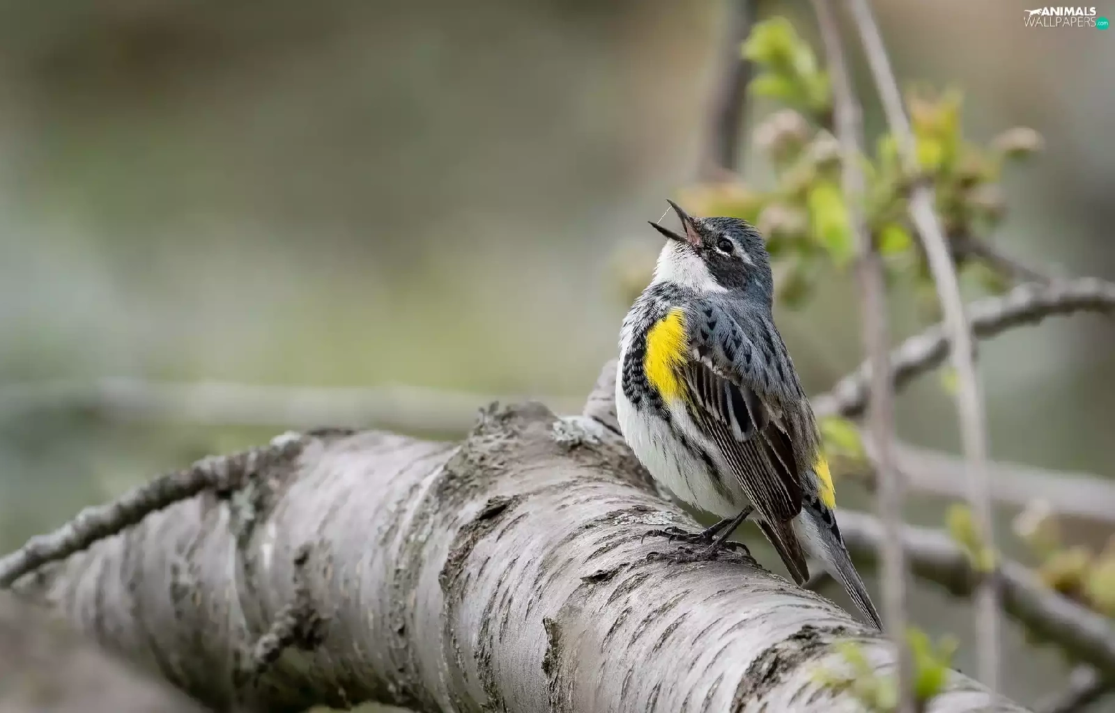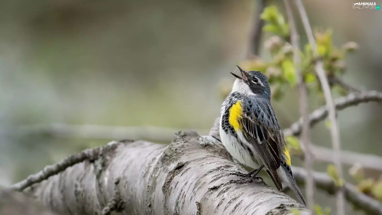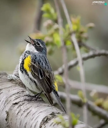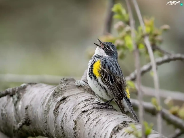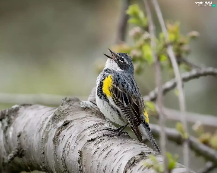 Bird, Myrtle warbler, branch, Warbler