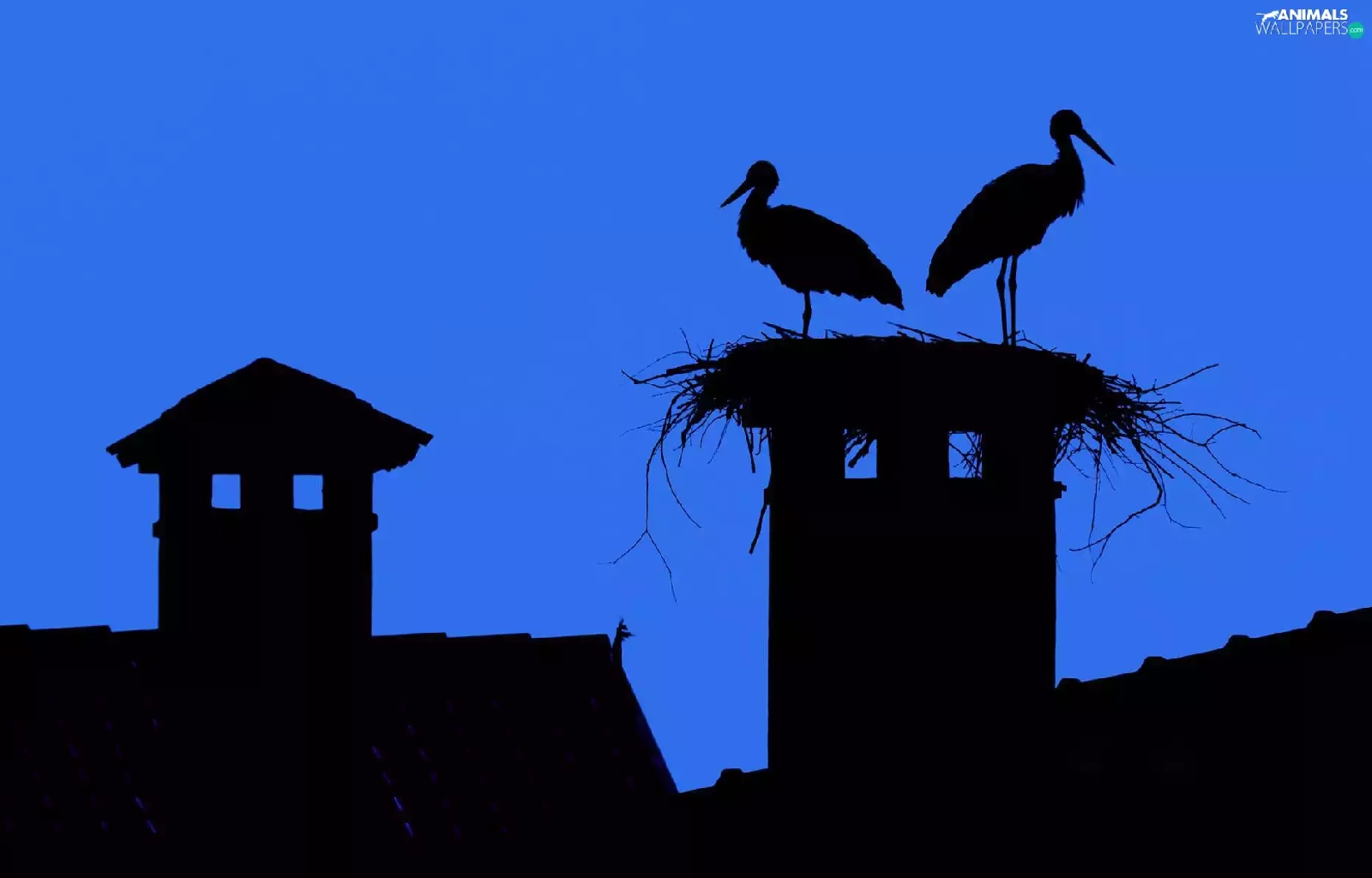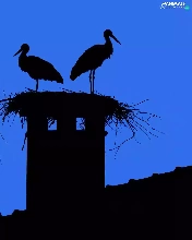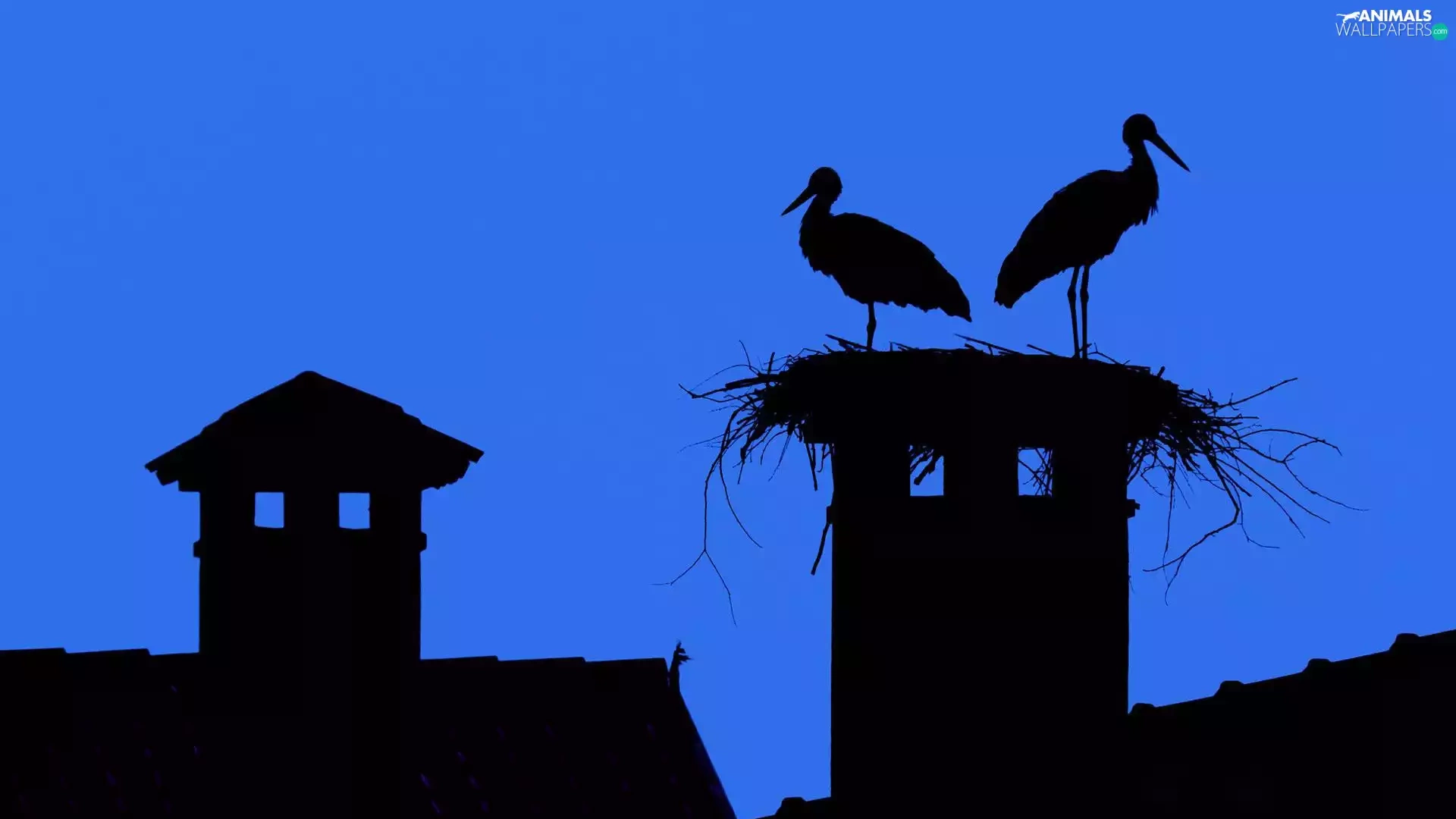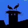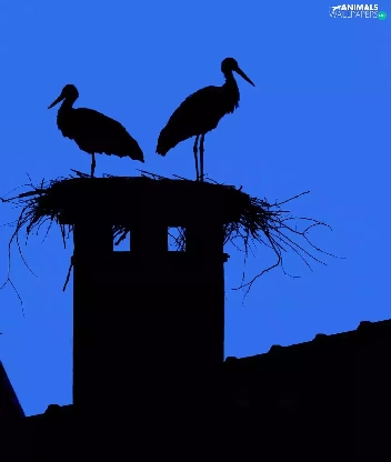 Storks, Houses, Night, nest