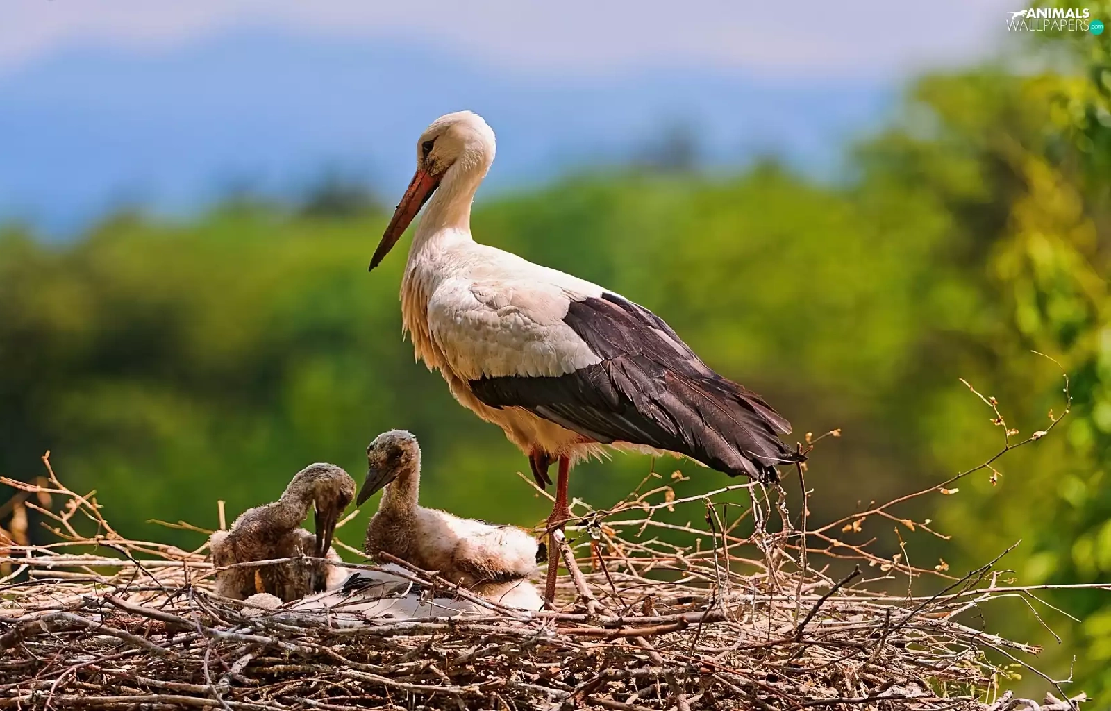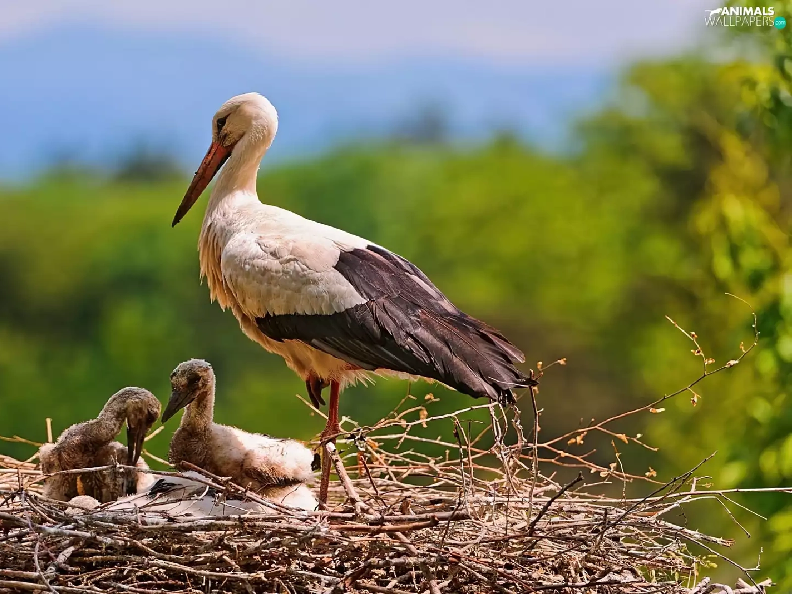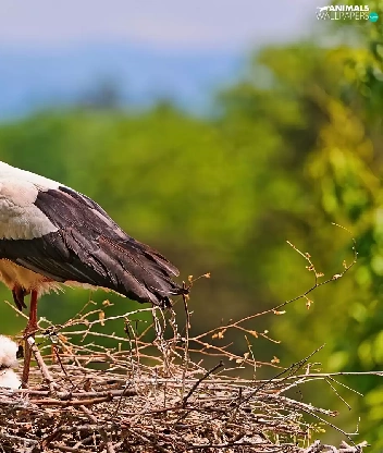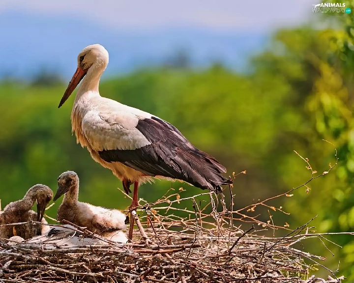 nest, stork, young