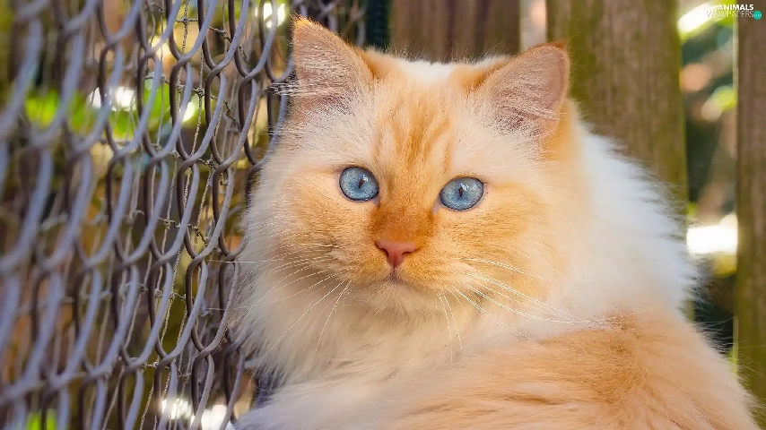 fence, net, Blue, Eyes, cat