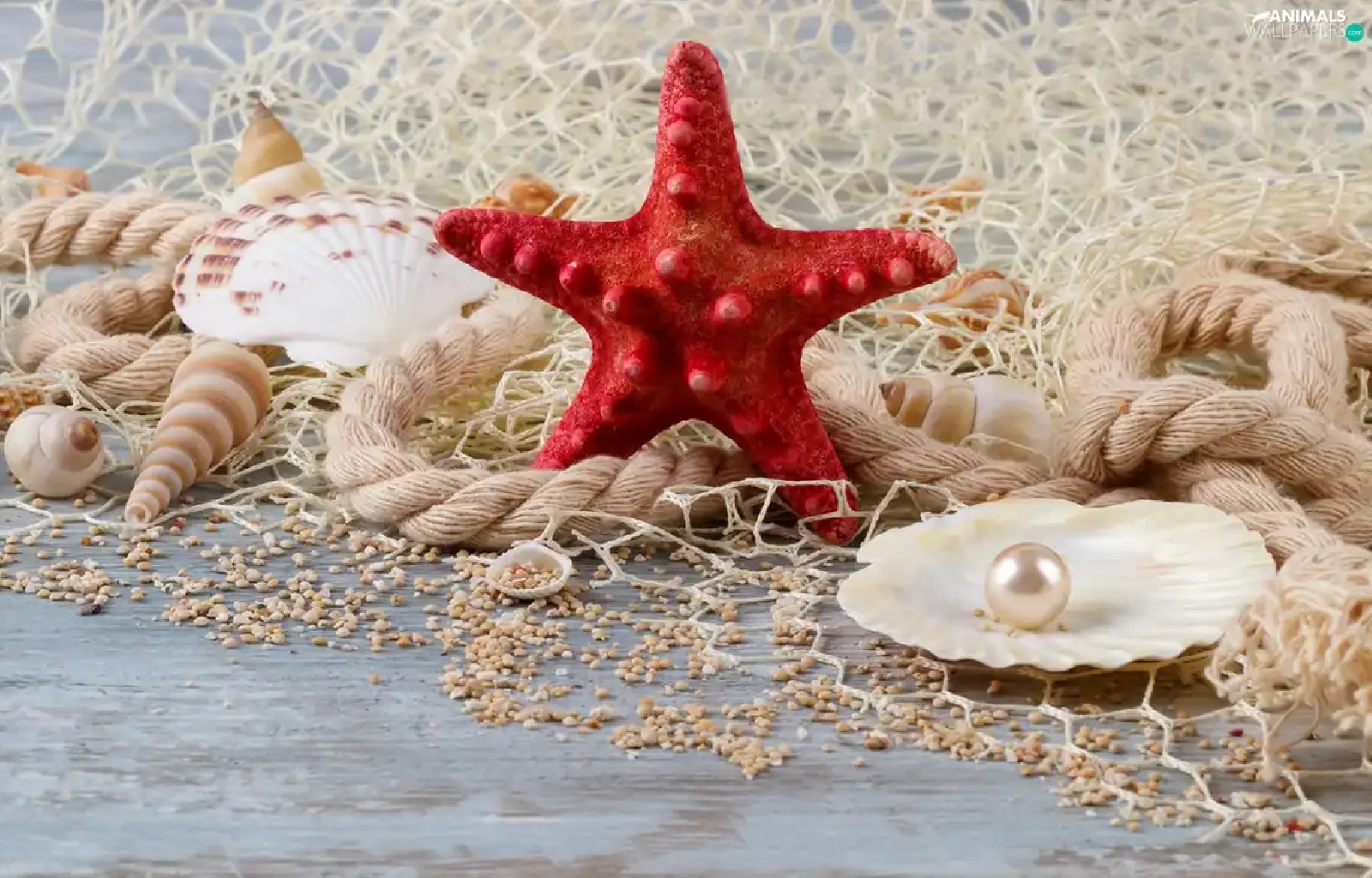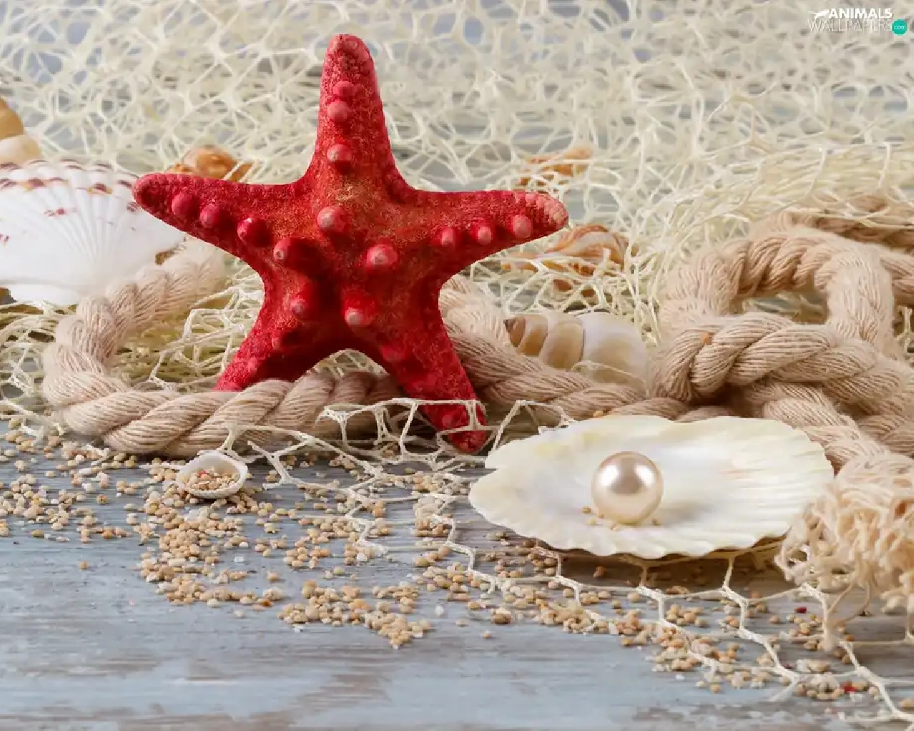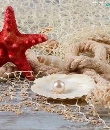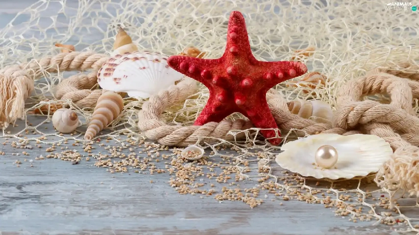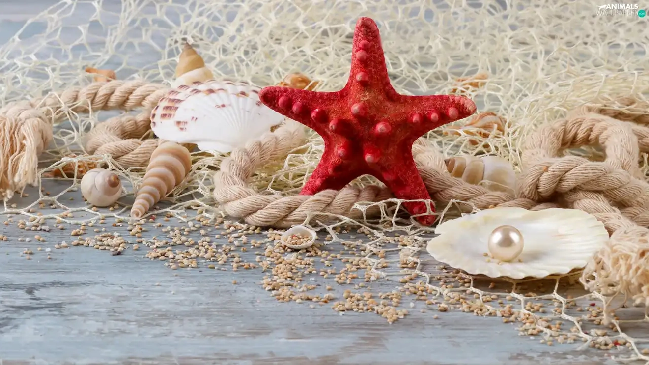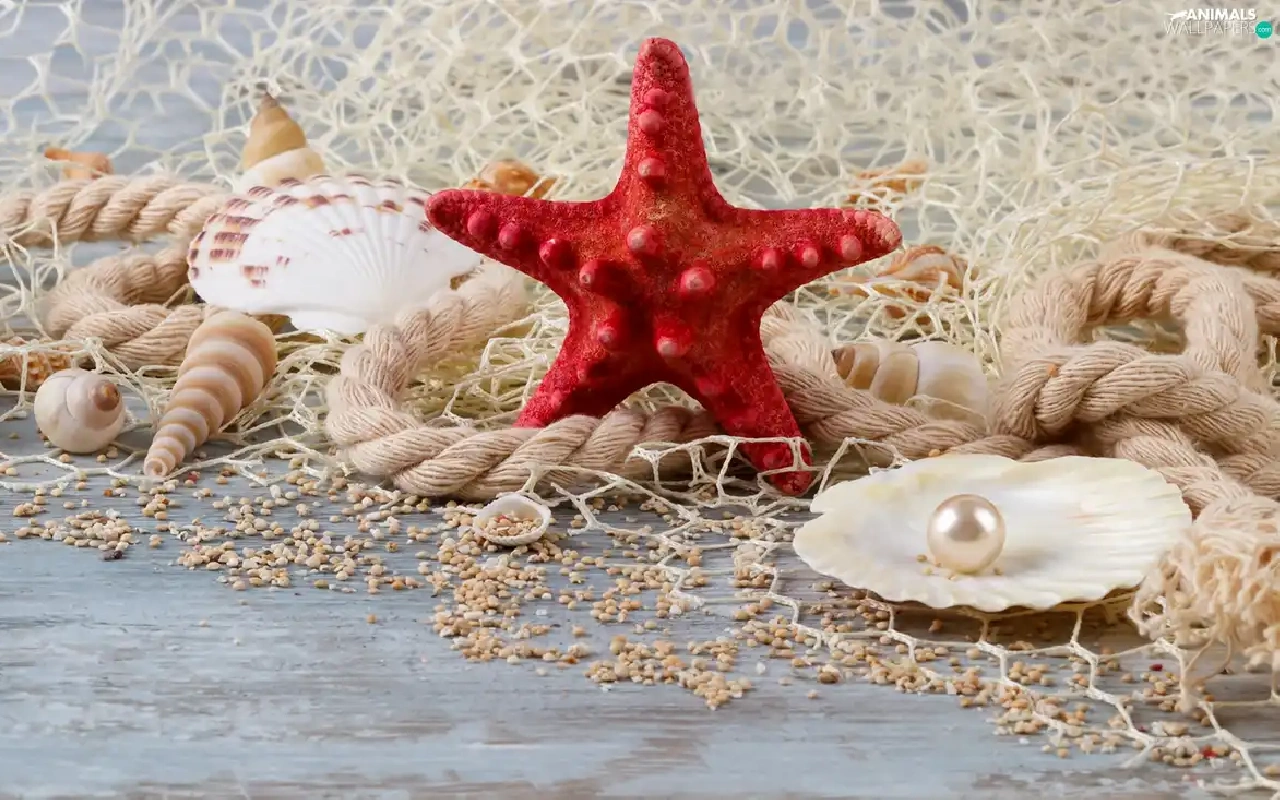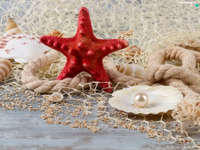 starfish, Shells, line, net, string, pearl