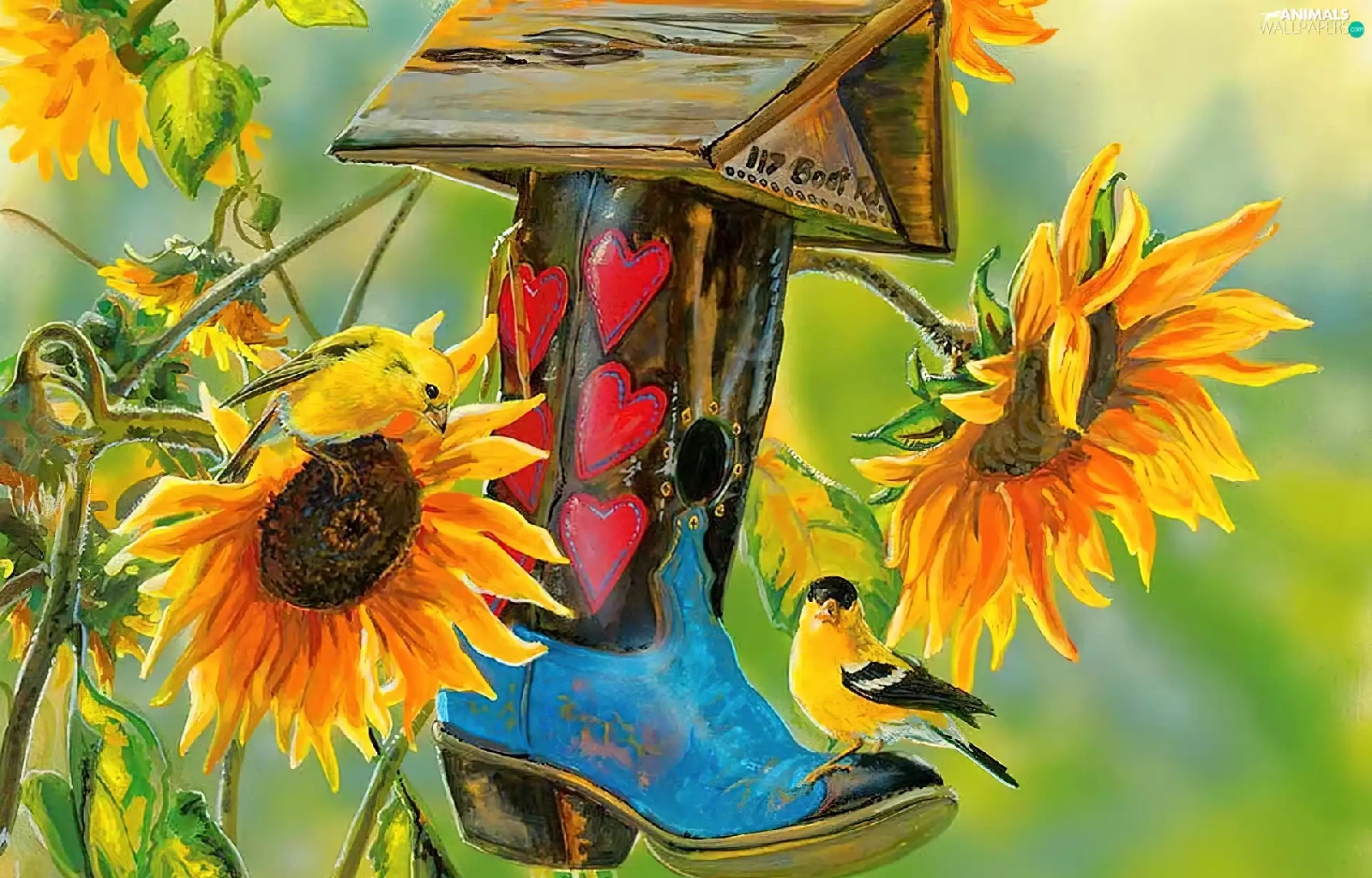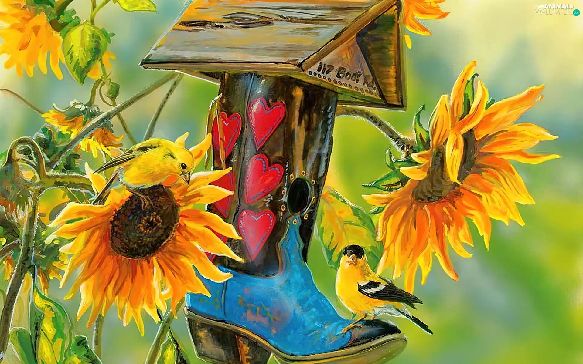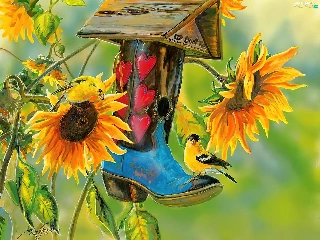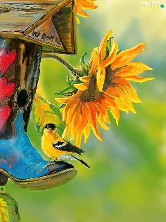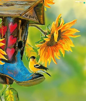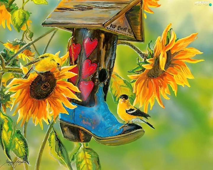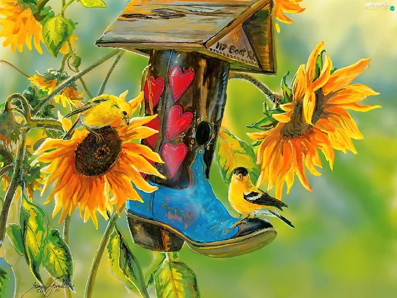 Bird, Nice sunflowers, Bird, ##