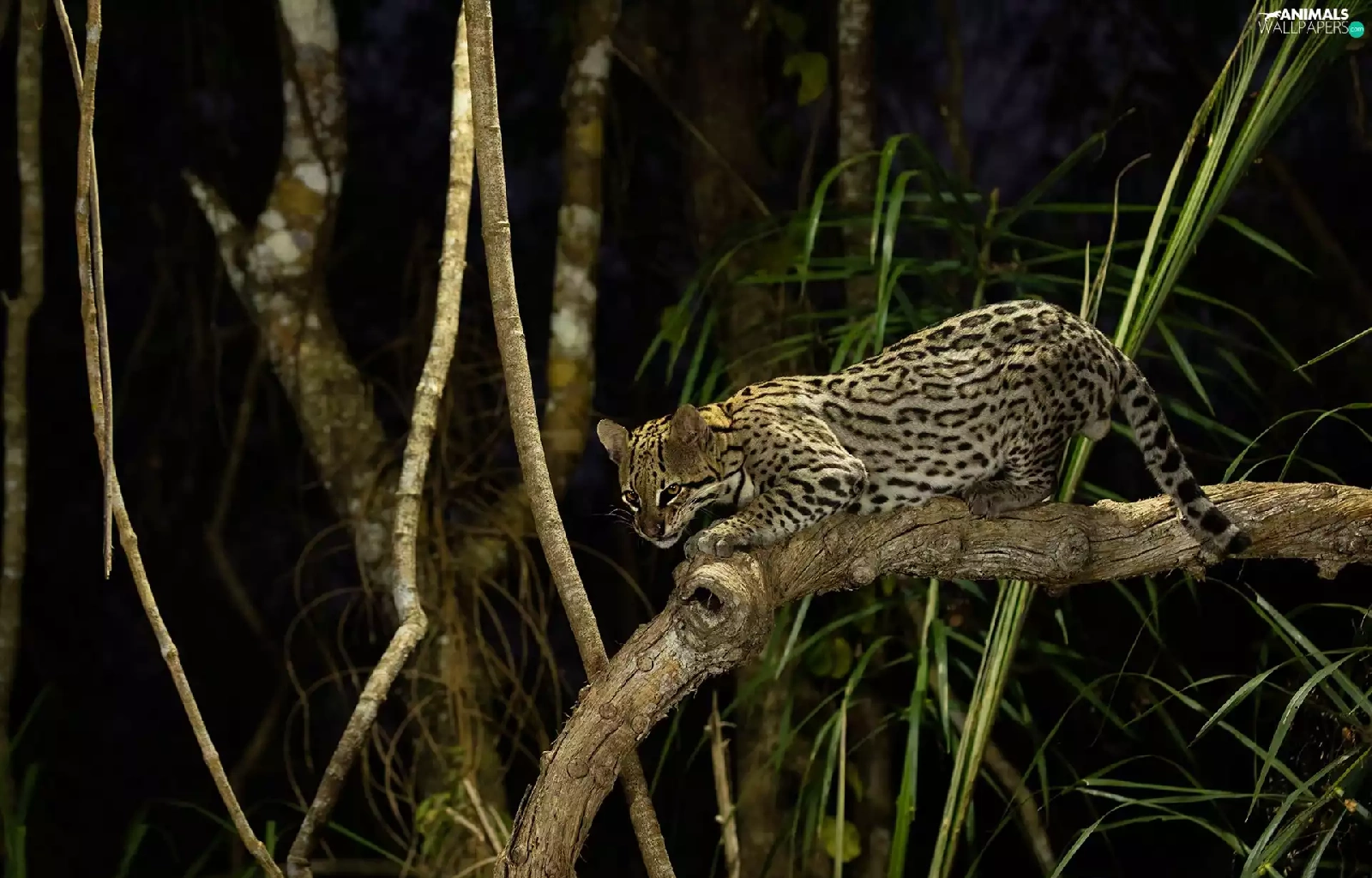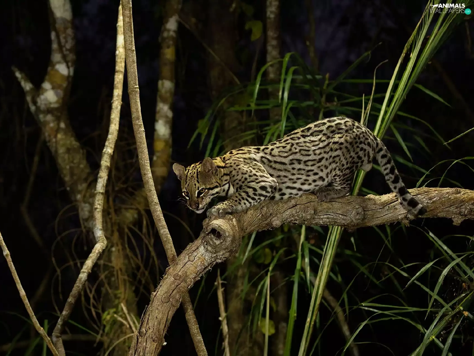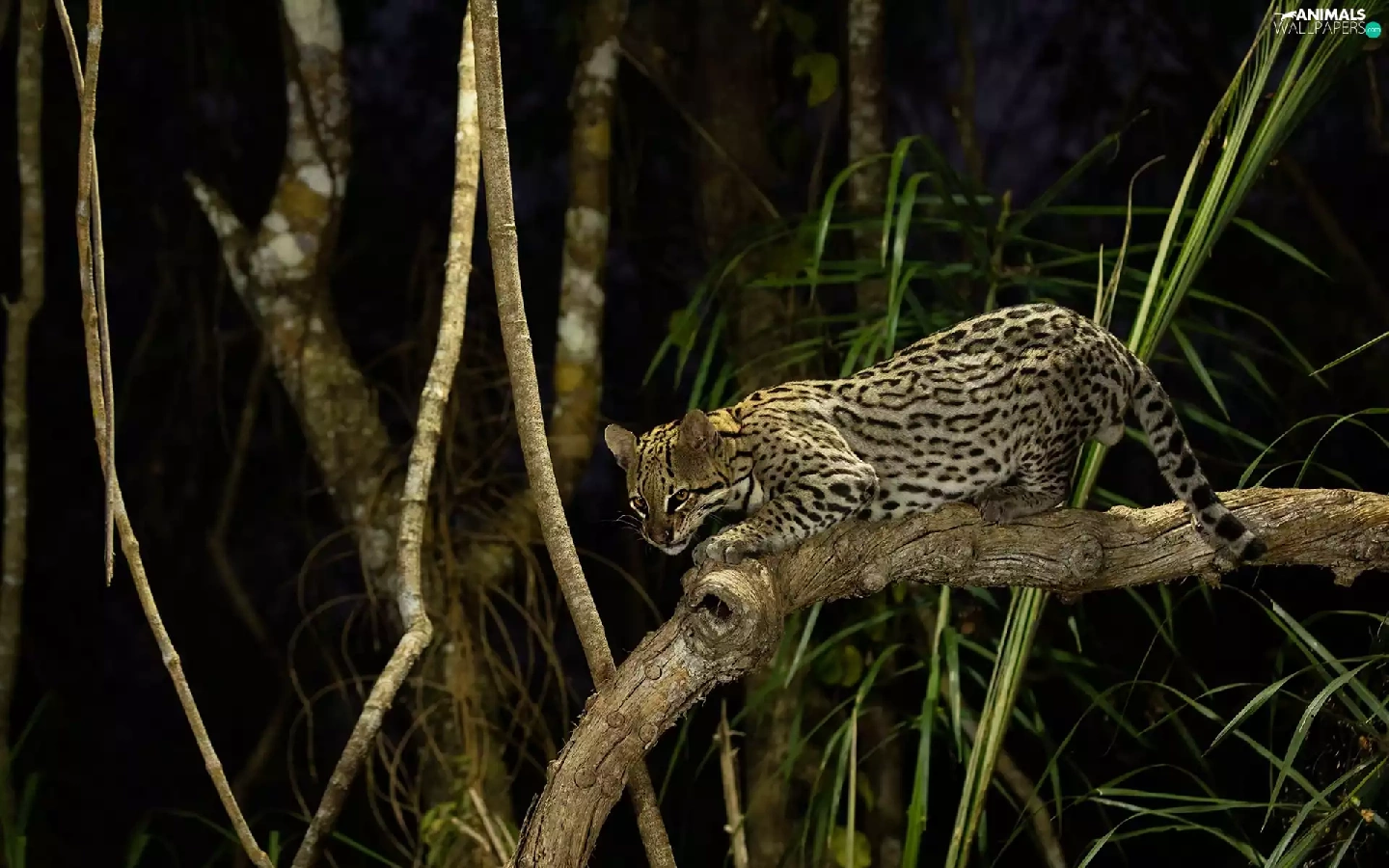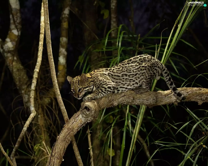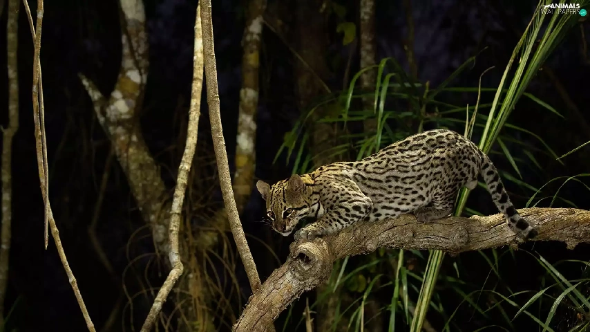 branch pics, ocelot, Night