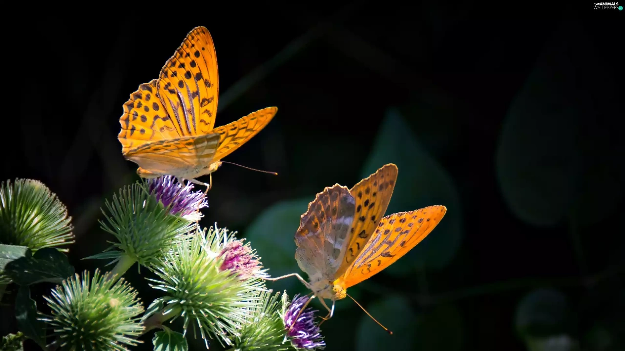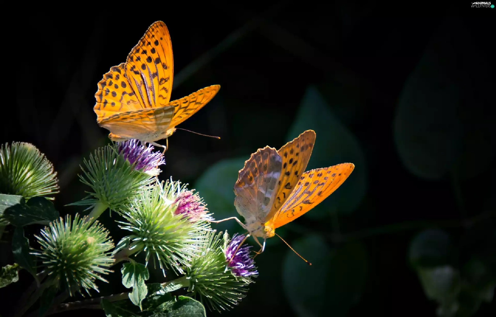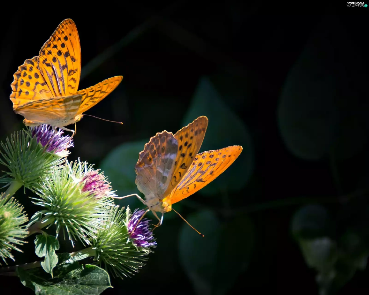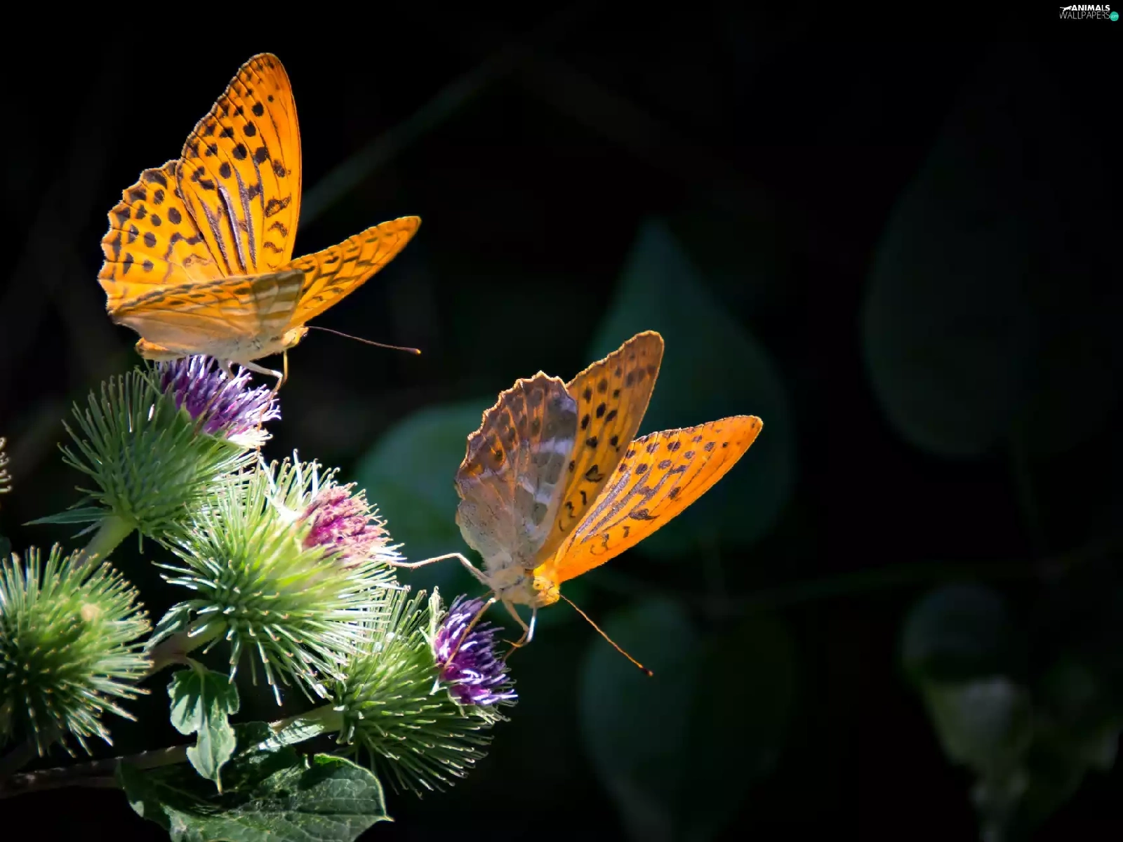 Nacre, Orange, teasel, Night, Paphia, butterflies