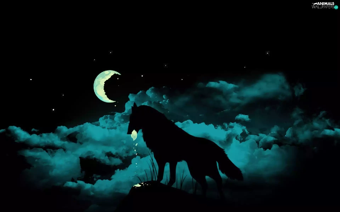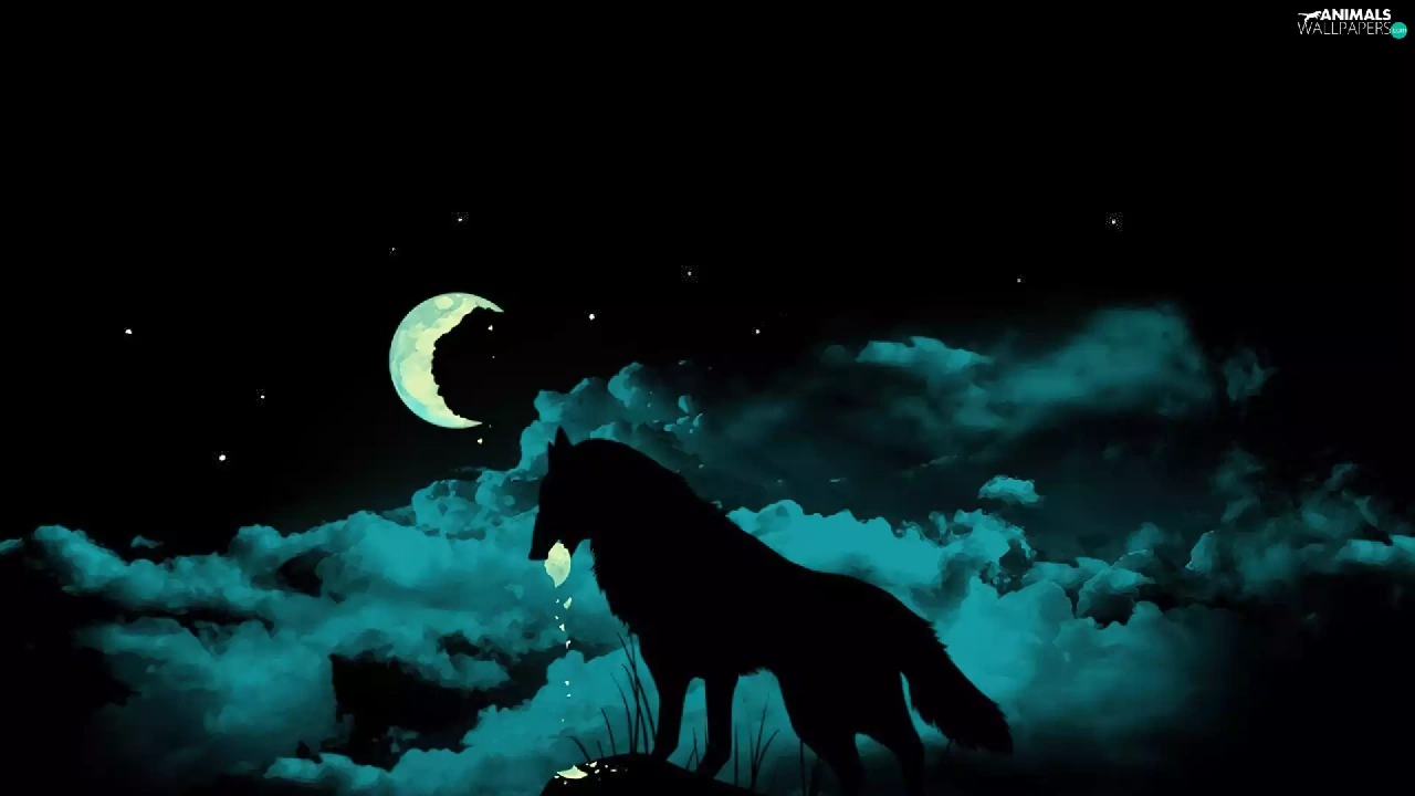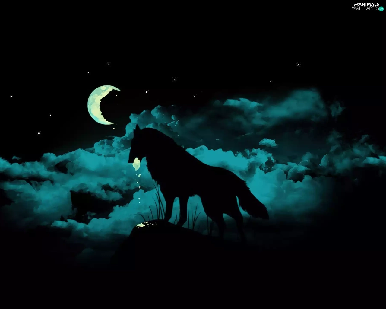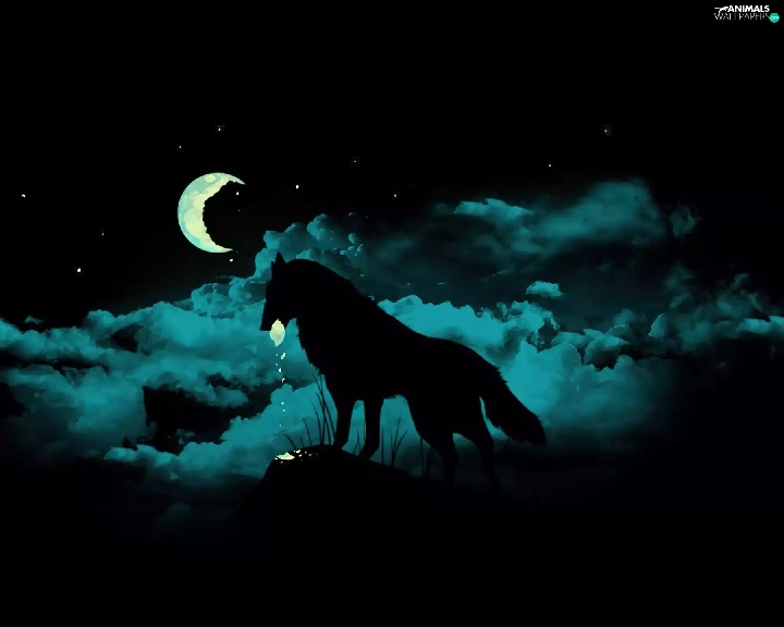 Night, Wolf, moon