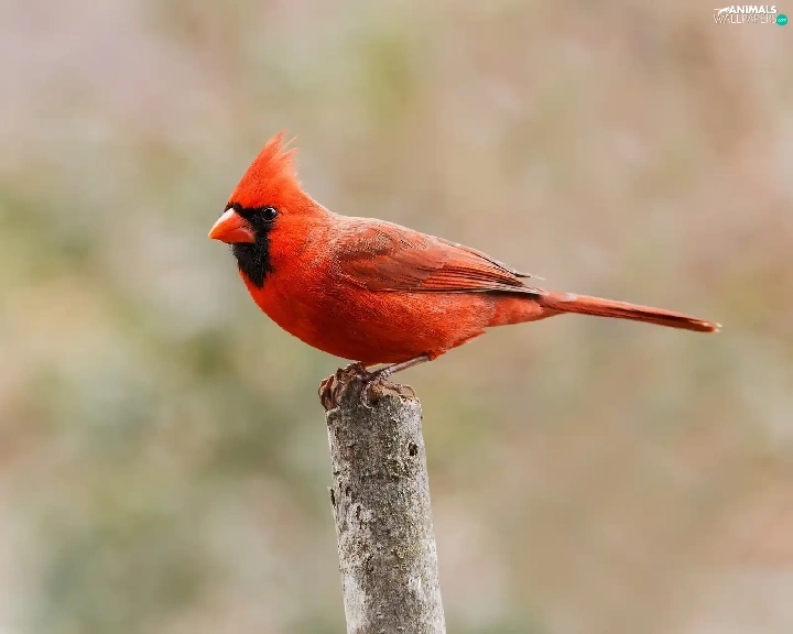 Red, Northern Cardinal, twig, Bird