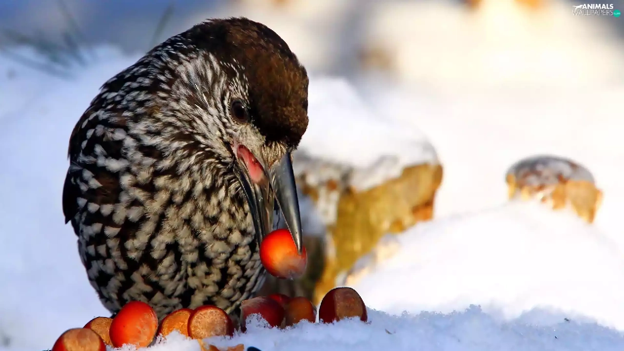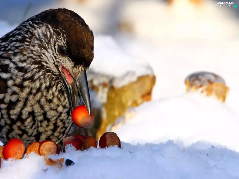 Bird, Acorns, winter, nose