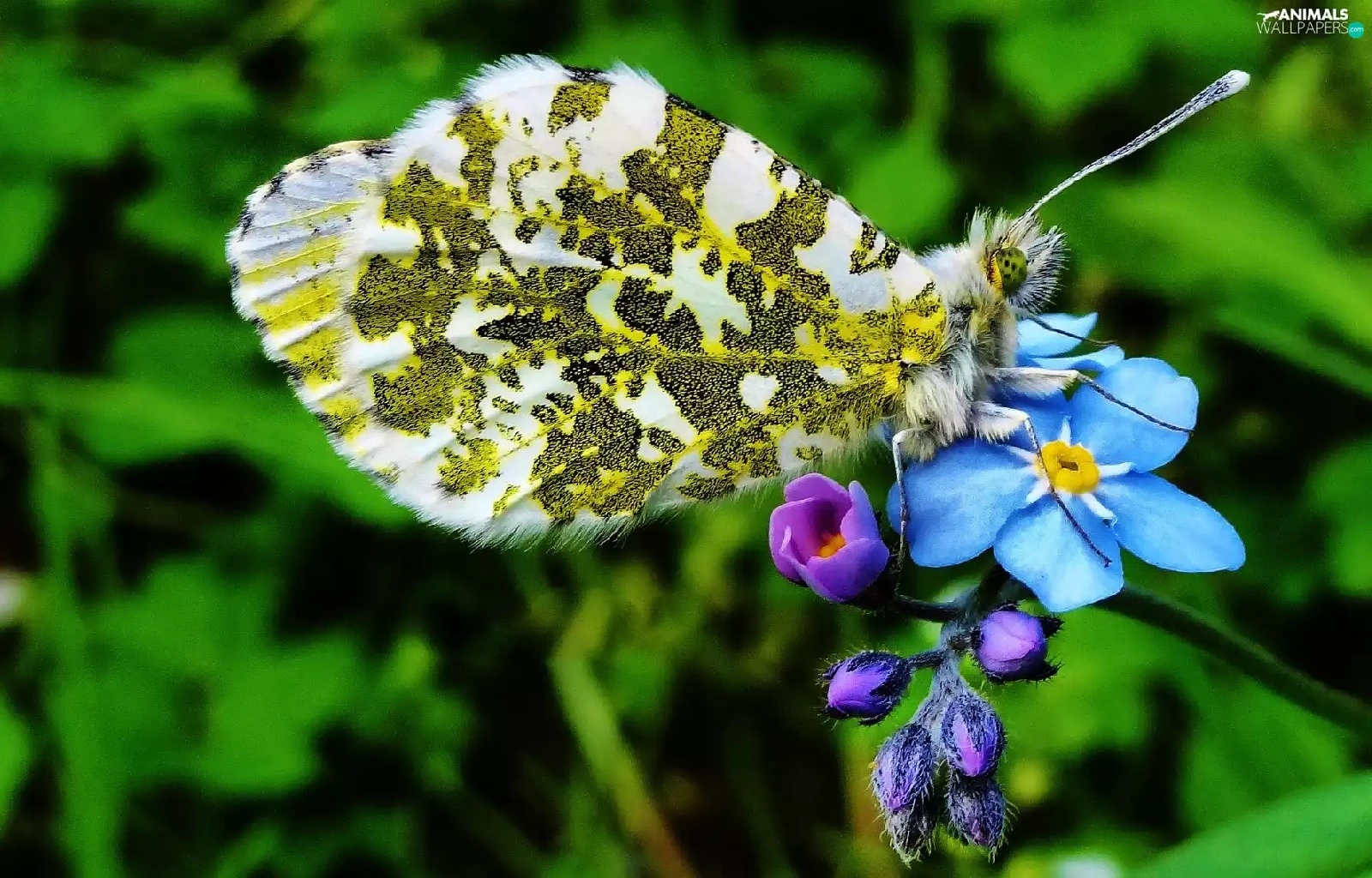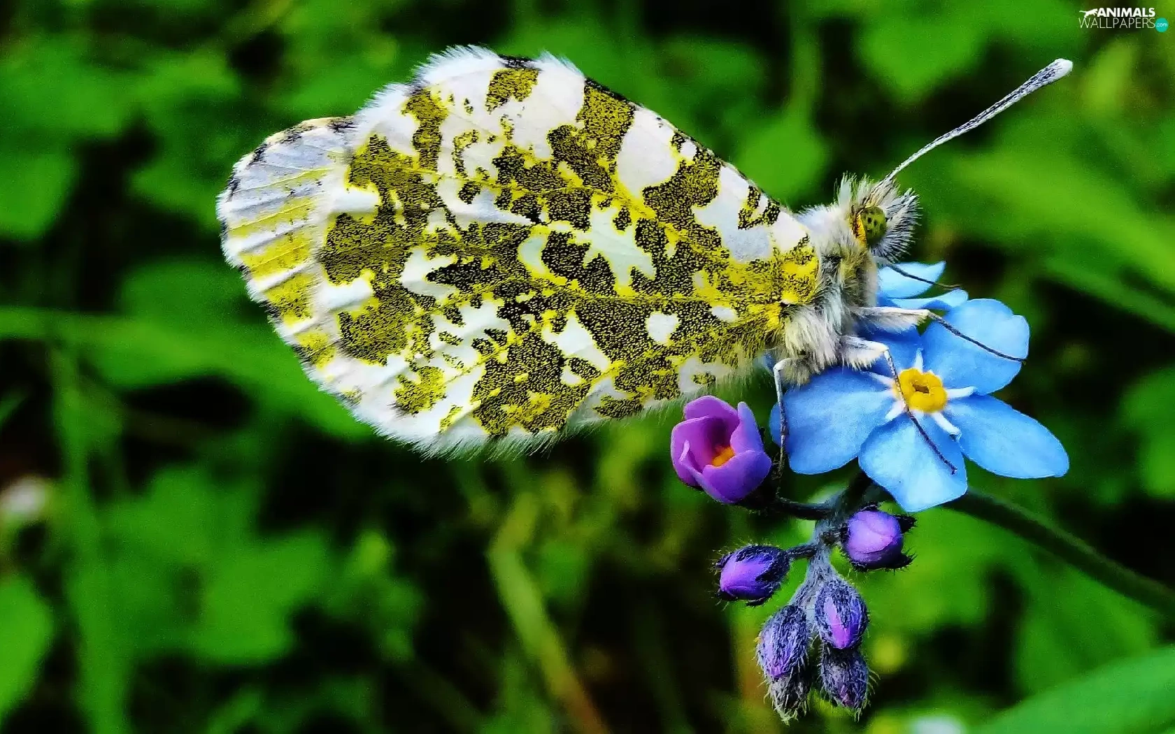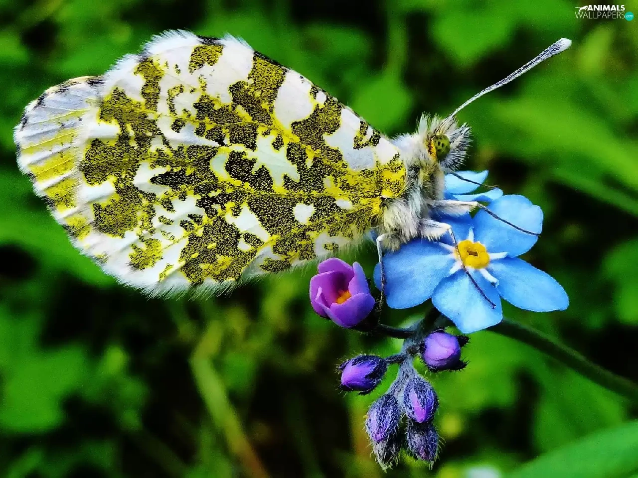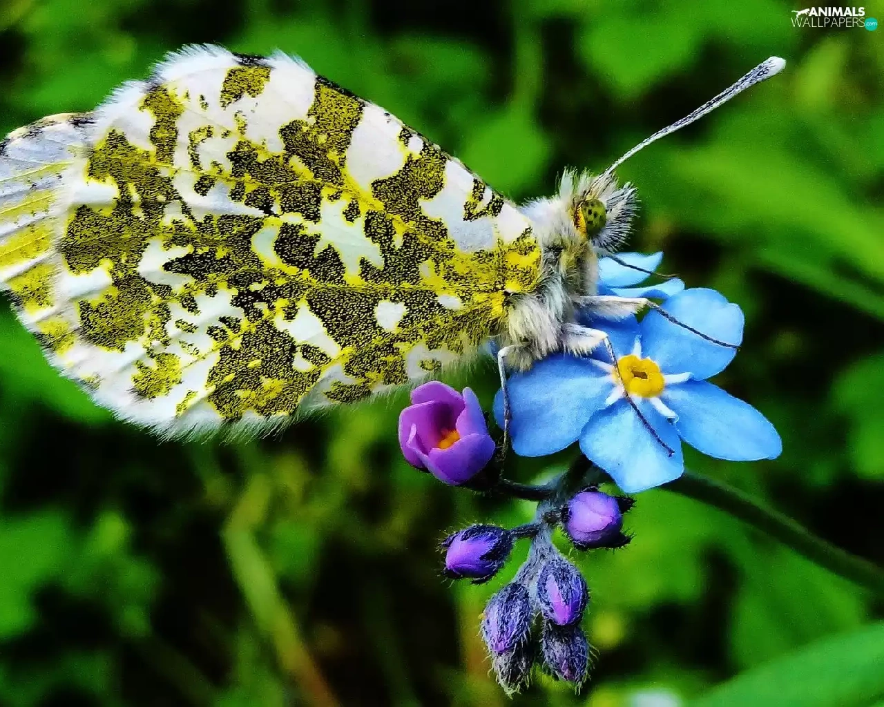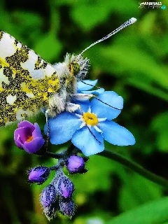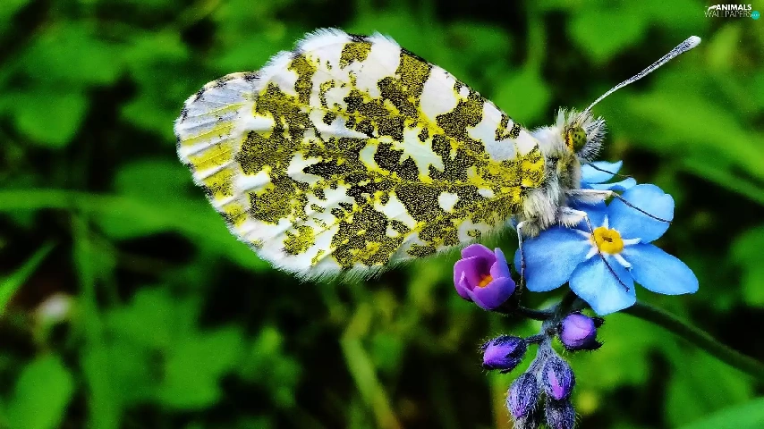 butterfly, forget-me-not