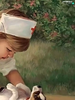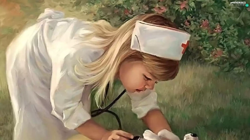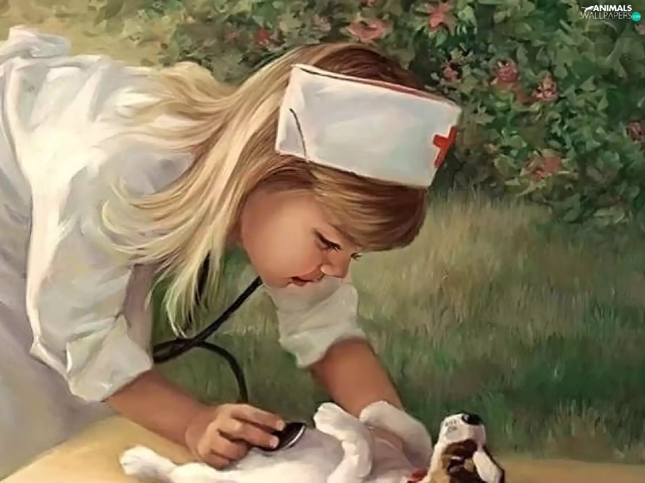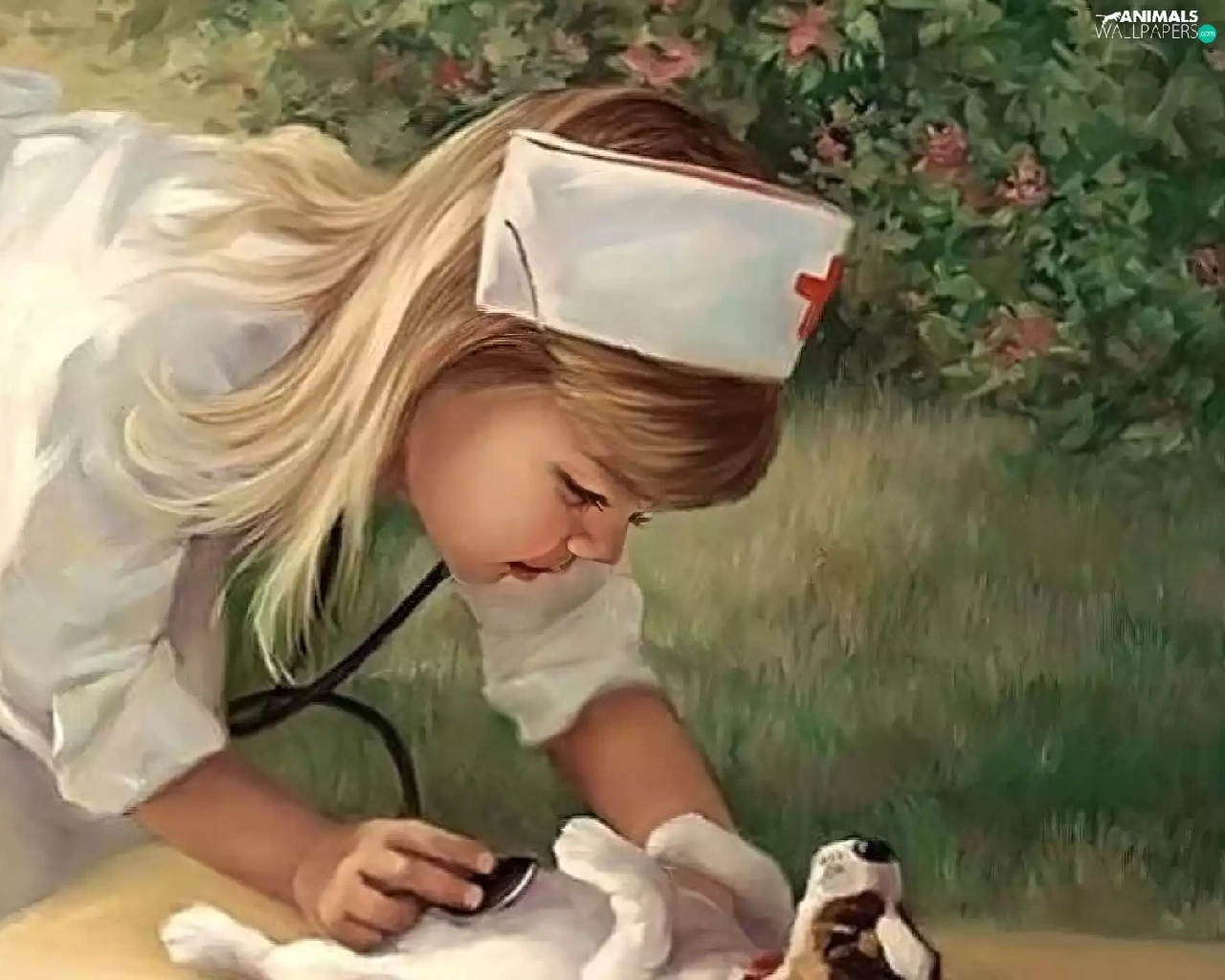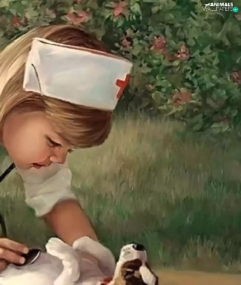 stethoscope, nurse, dog, Puppy, girl