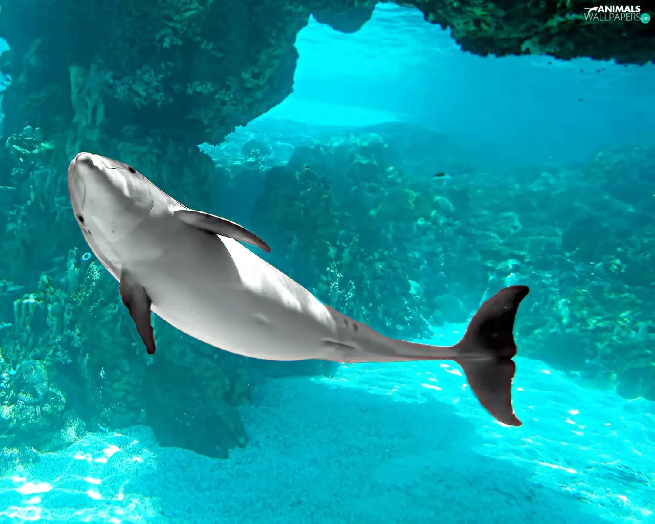 ocean, dolphin, azure