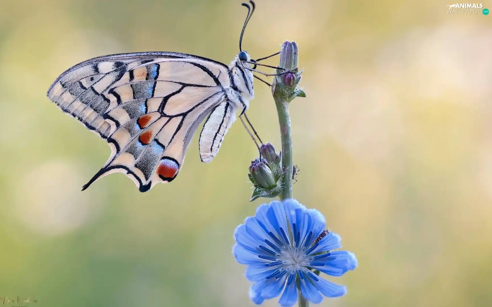 Colourfull Flowers, Close, Oct Queen, blue, butterfly