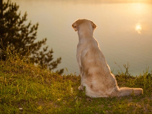 Old English Sheepdog, Bobtail, car in the meadow, Fog, fence