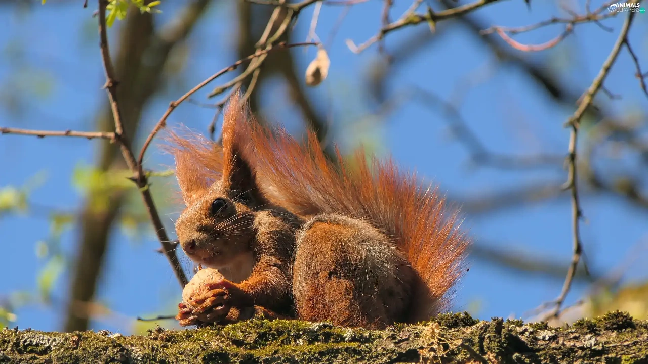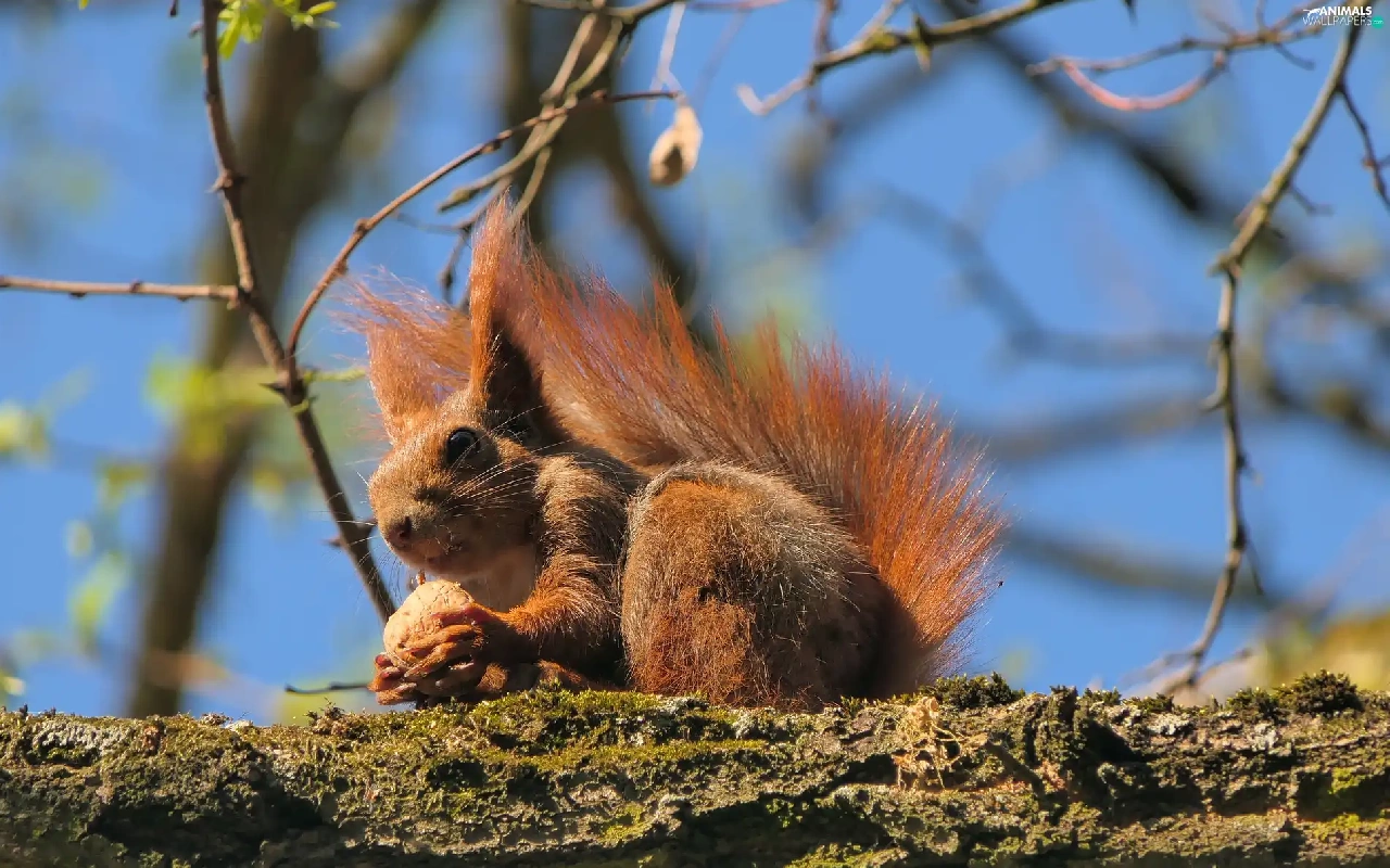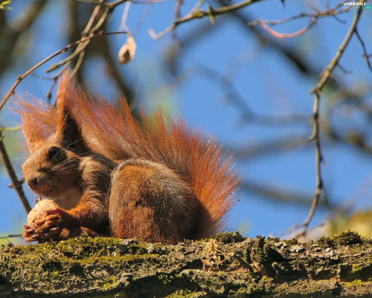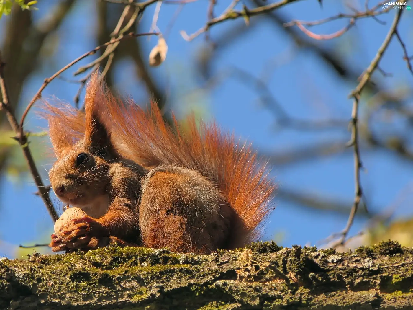 squirrel, trees, Lod on the beach, nut
