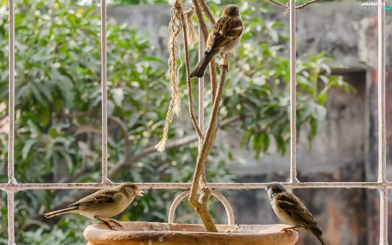 bowl, Three, Birds on the log