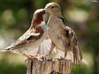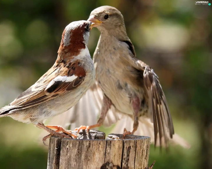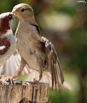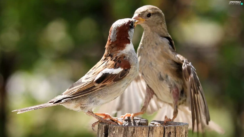 Birds on the log, stump