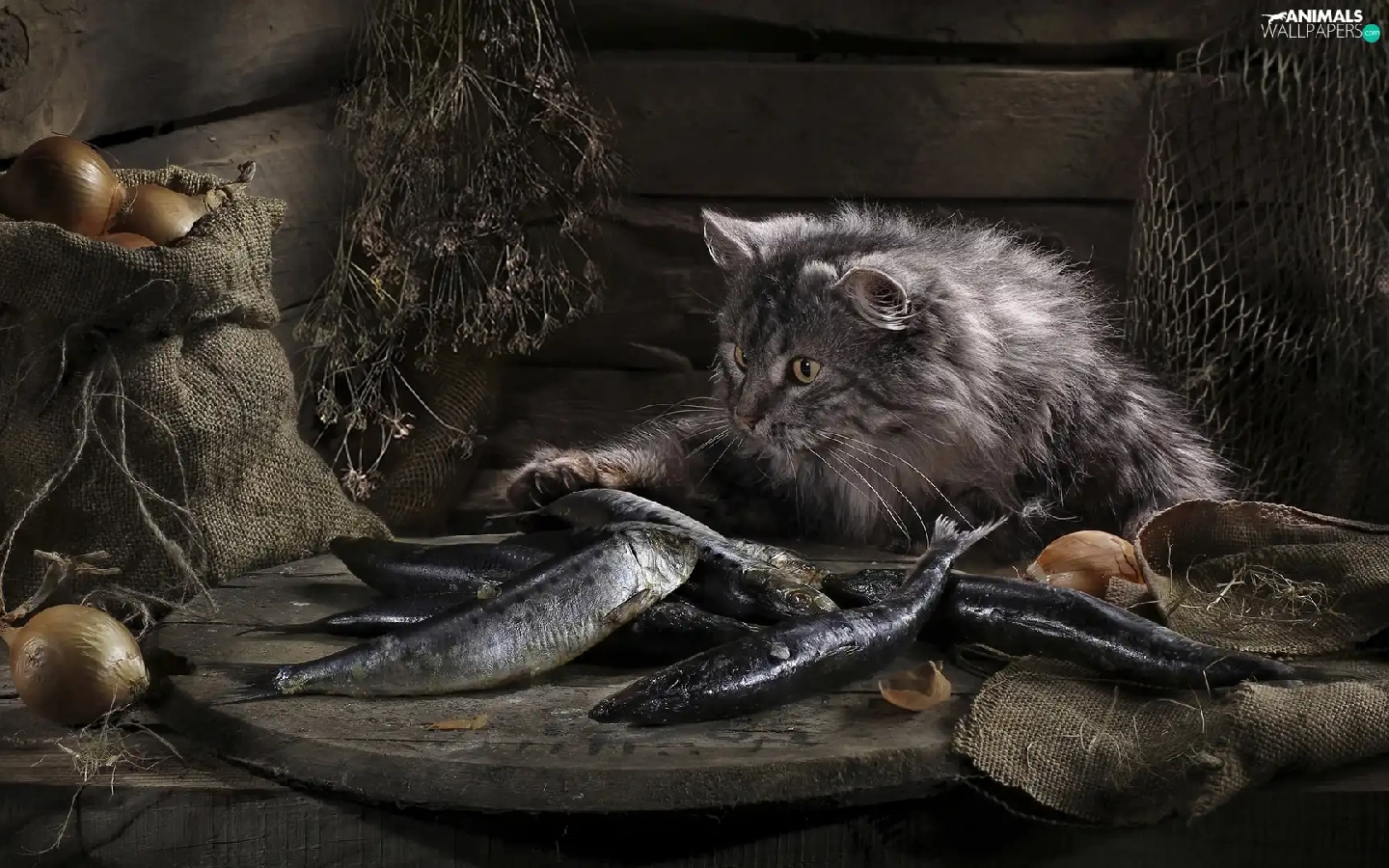 onion, cat, fish