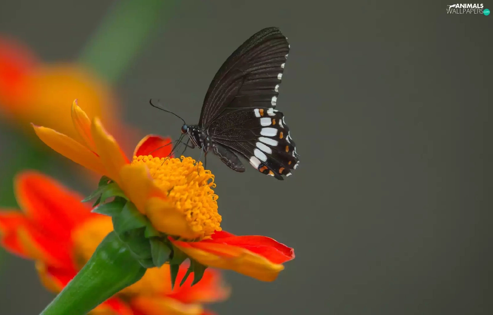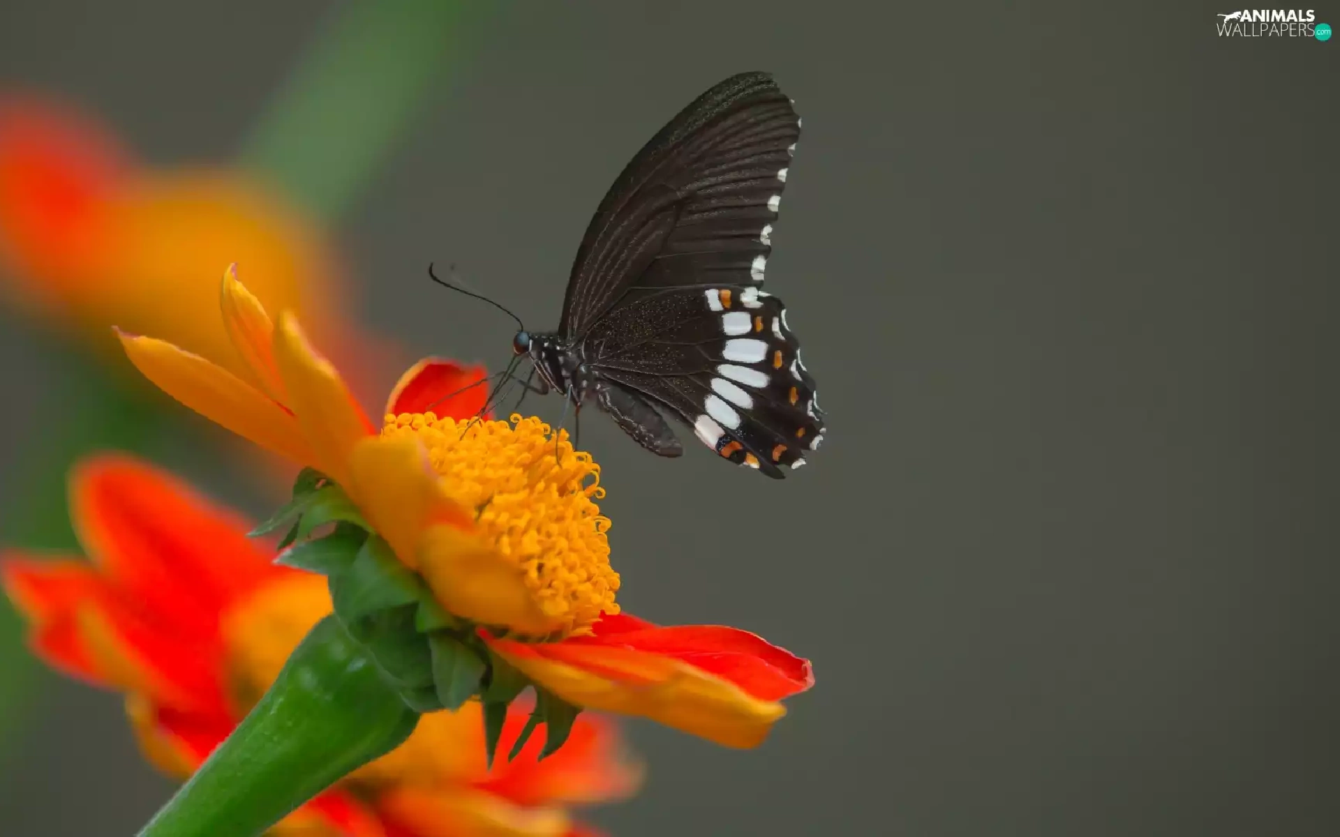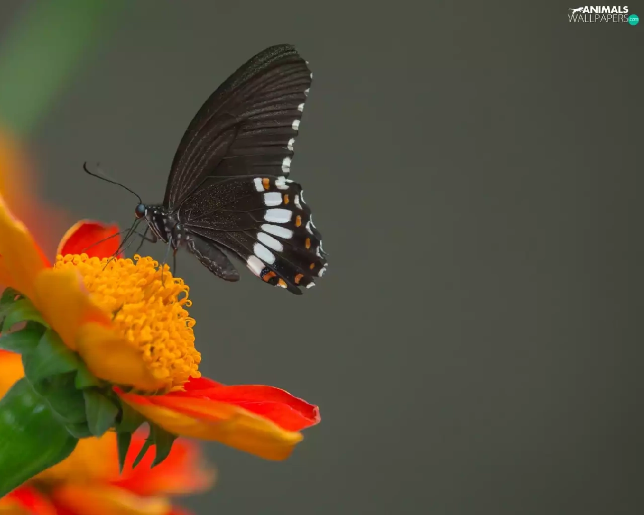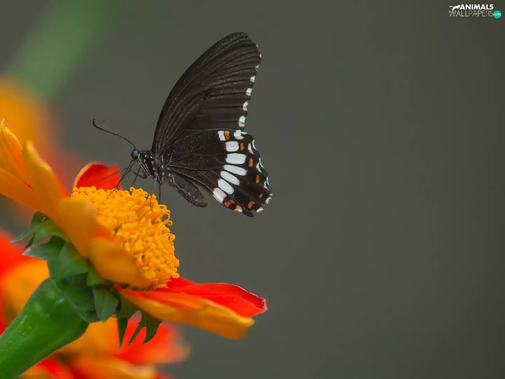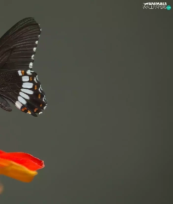 Orange, butterfly, gray, Indian Common Mormon, Black, Colourfull Flowers, background