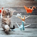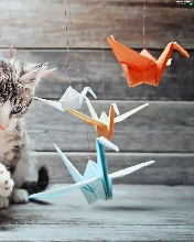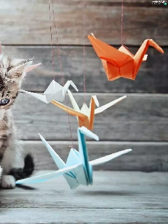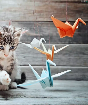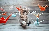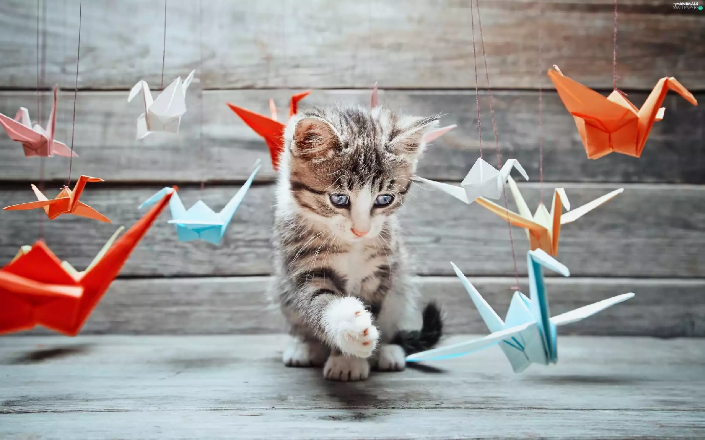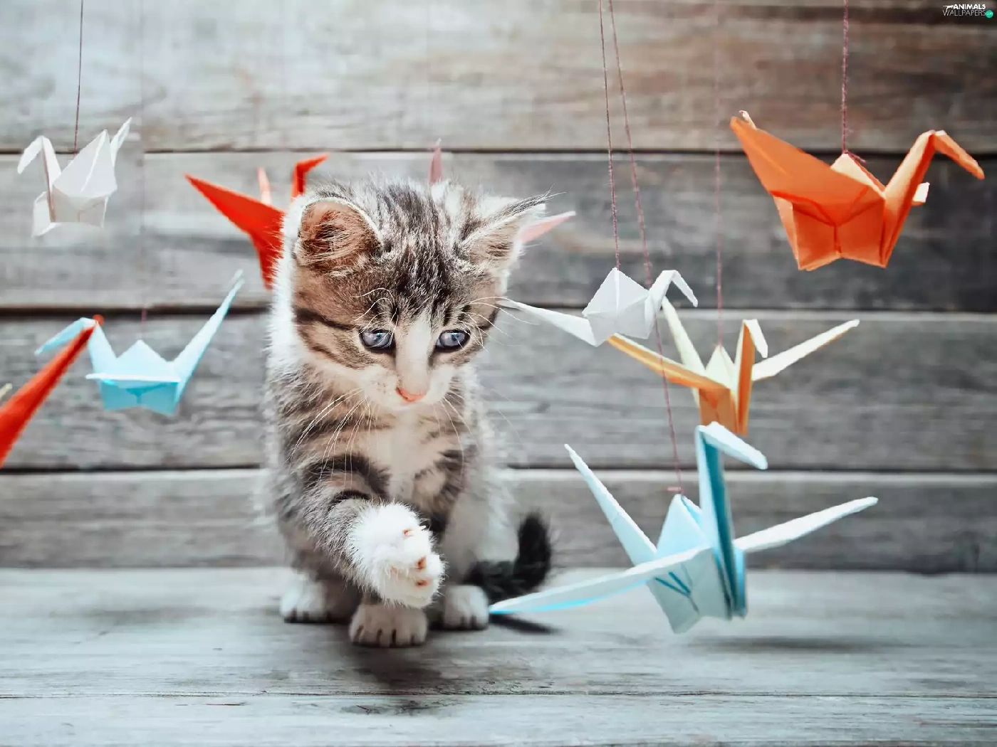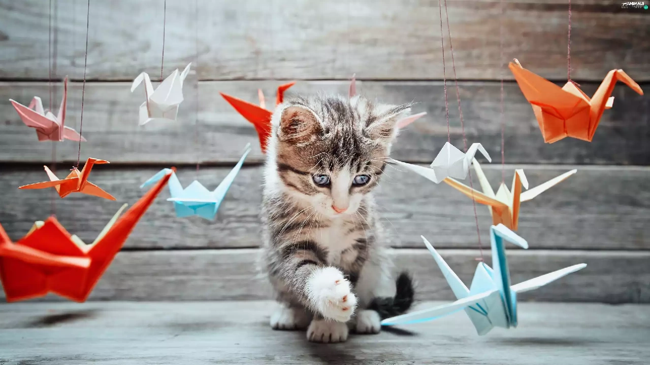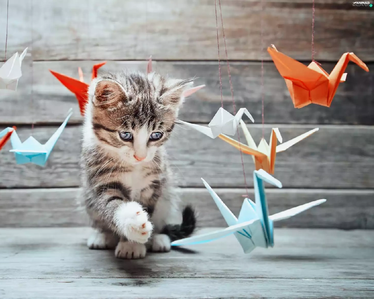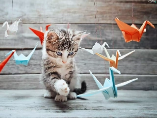 Origami, kitten, play
