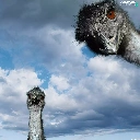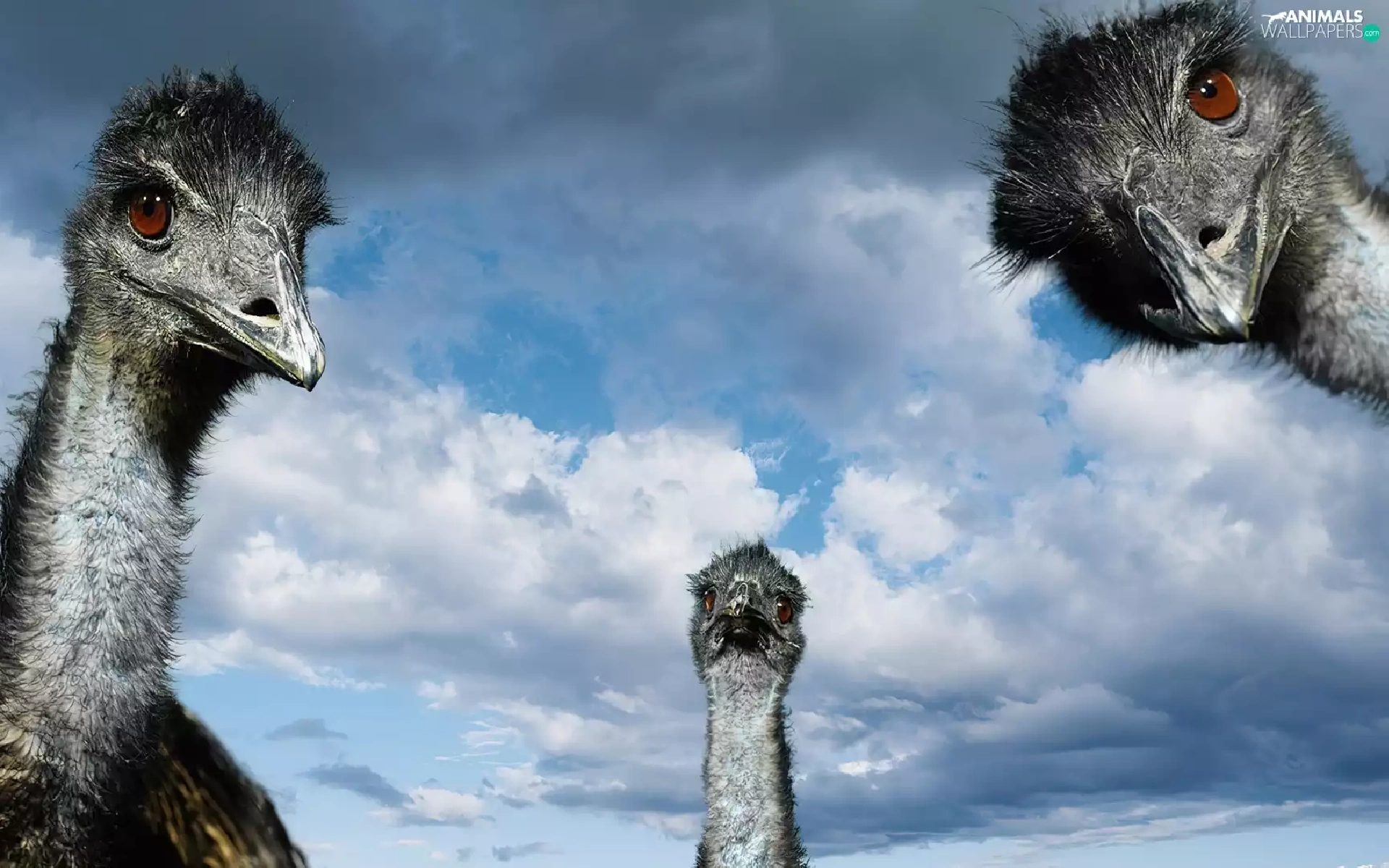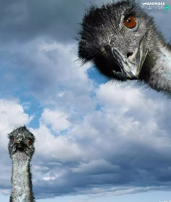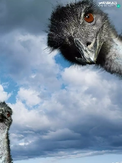 Three, Sky, clouds, ostriches
