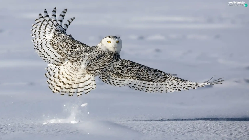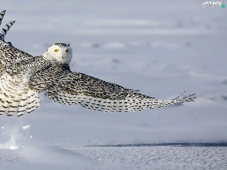 wings, snow, Snowy Owl, spread, Bird