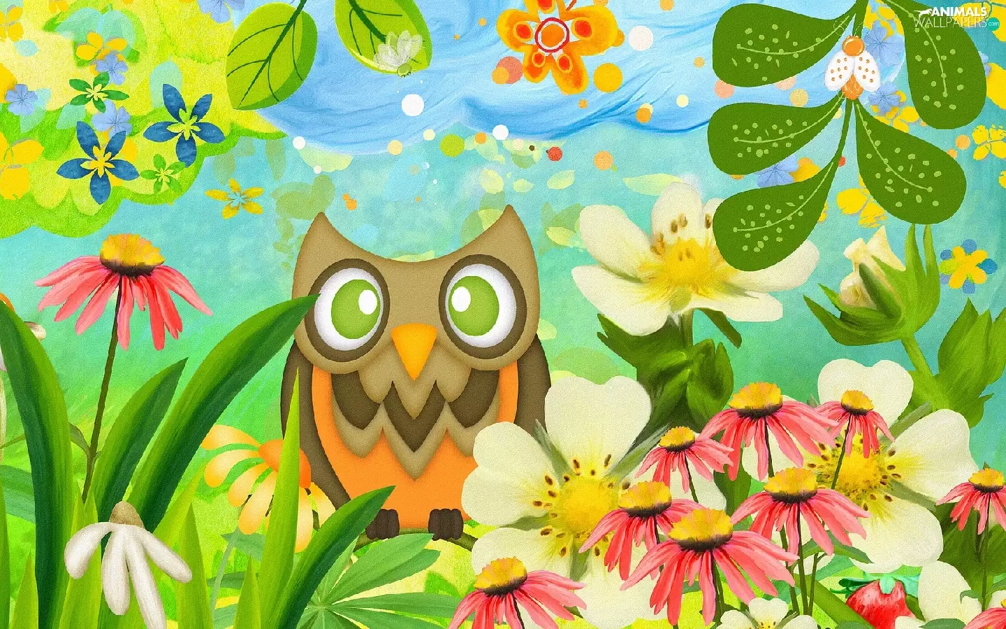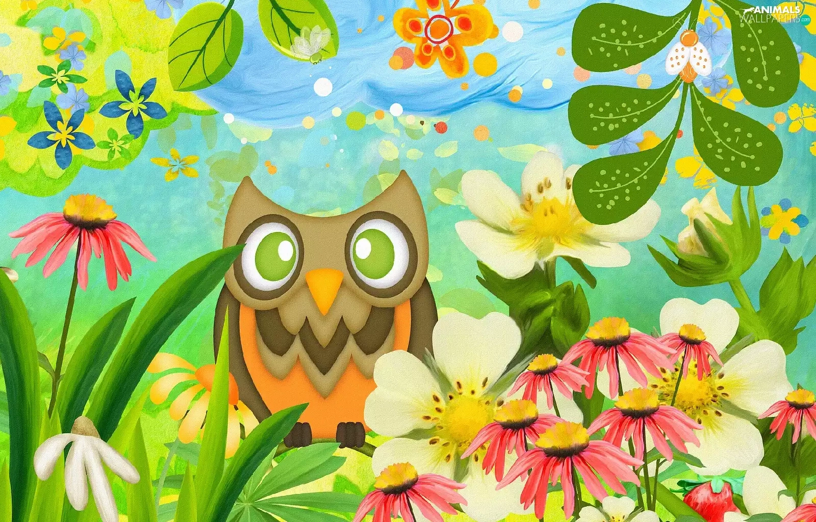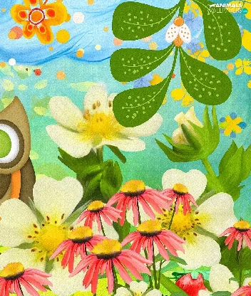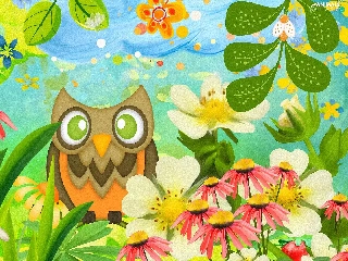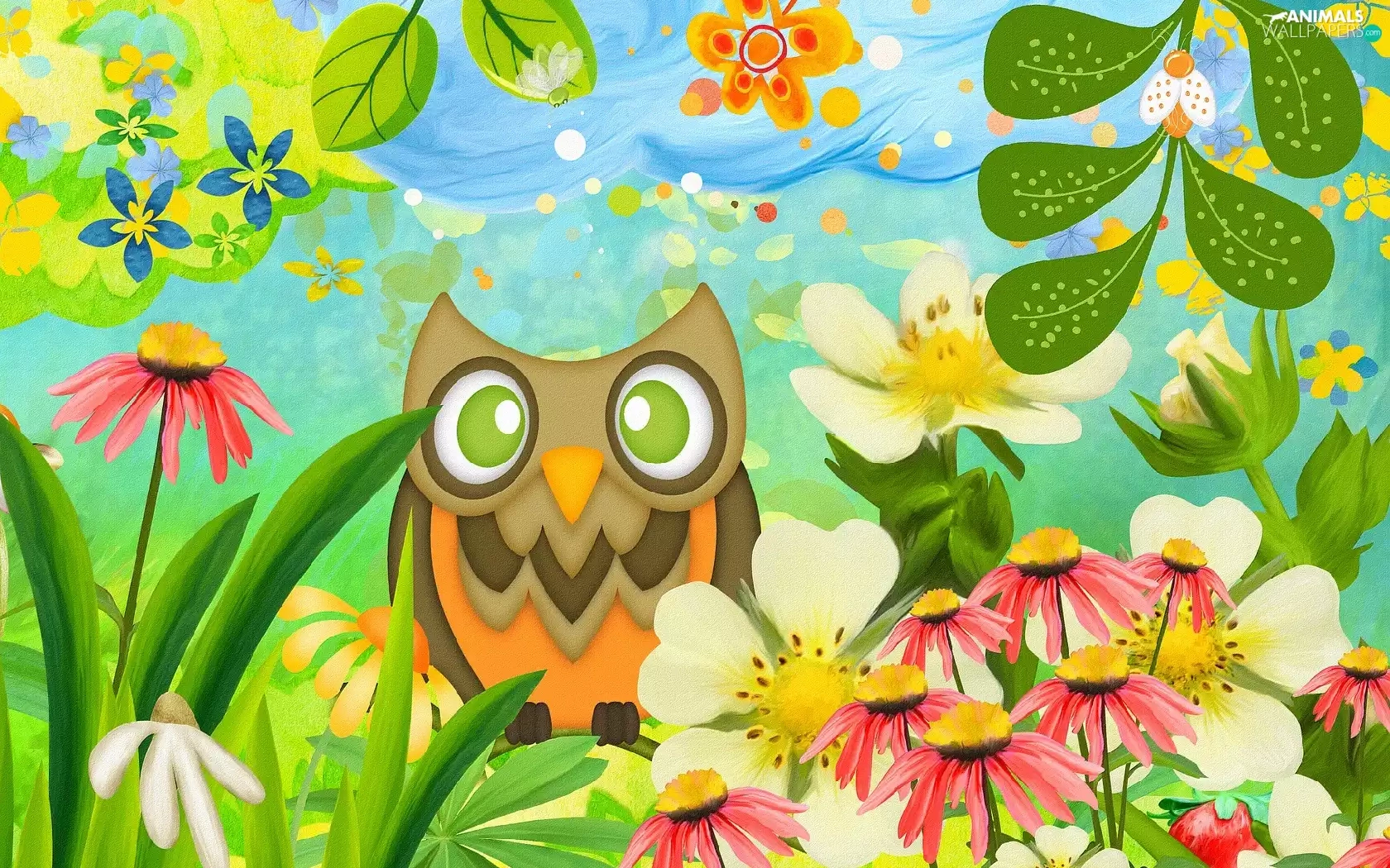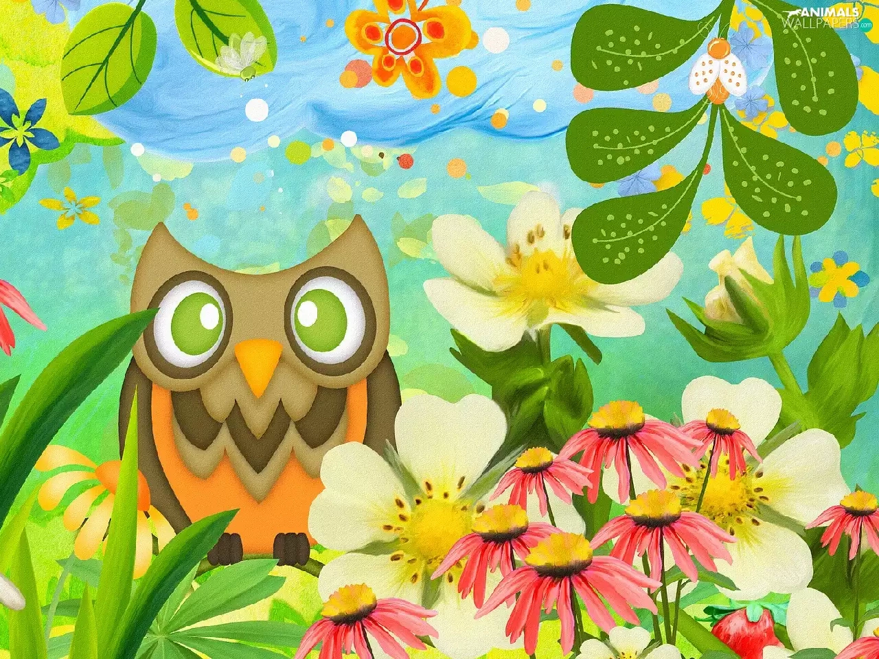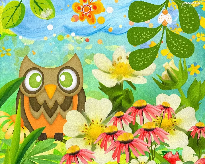 Flowers, 2D Graphics, owl